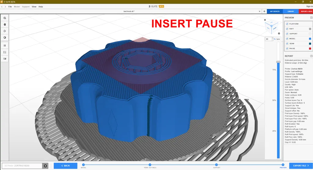 Trong trường hợp này, bạn có thể in mà không cần tạm dừng và thêm ren cấy sau khi in.