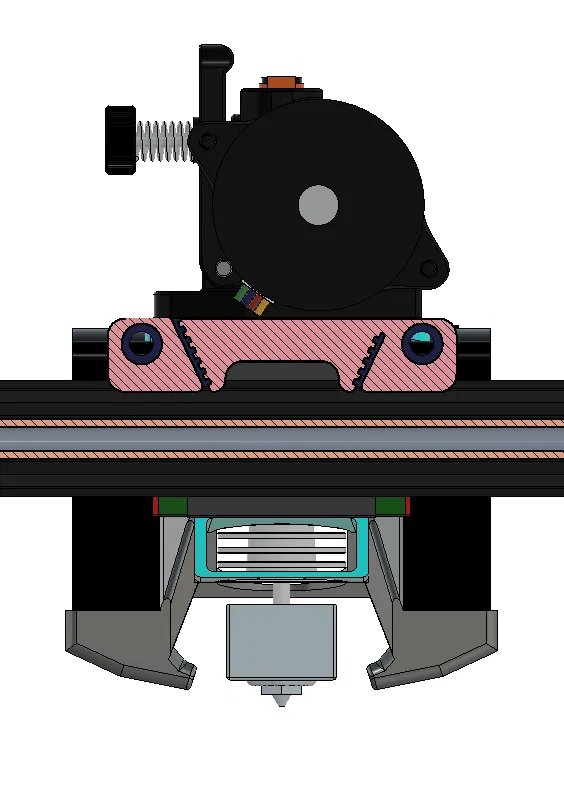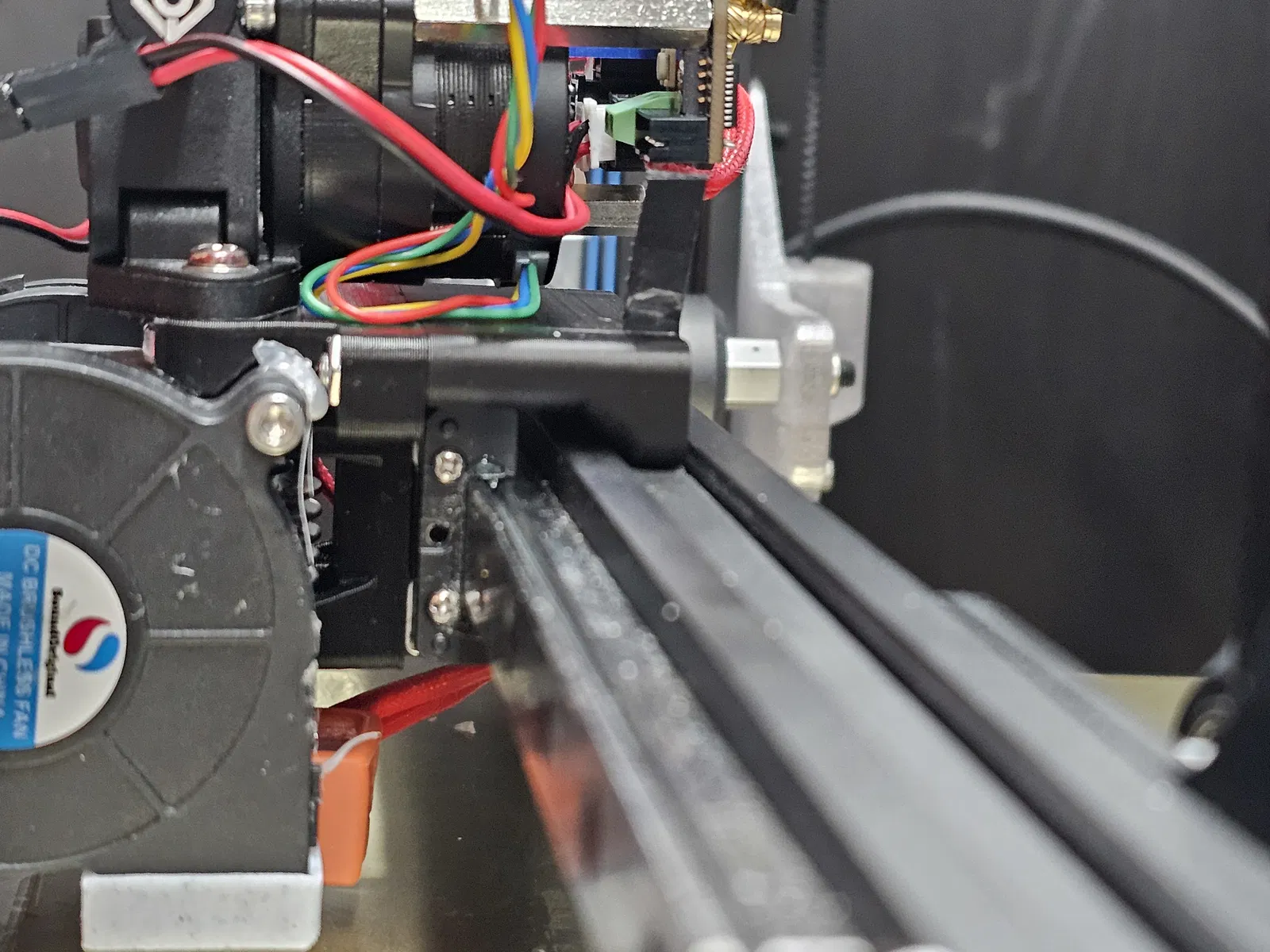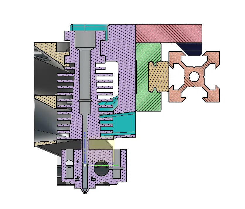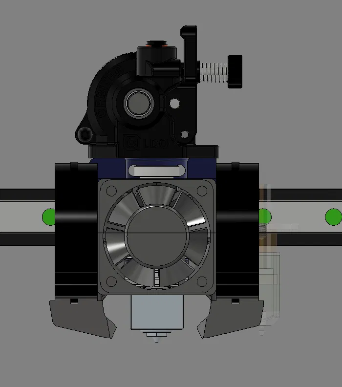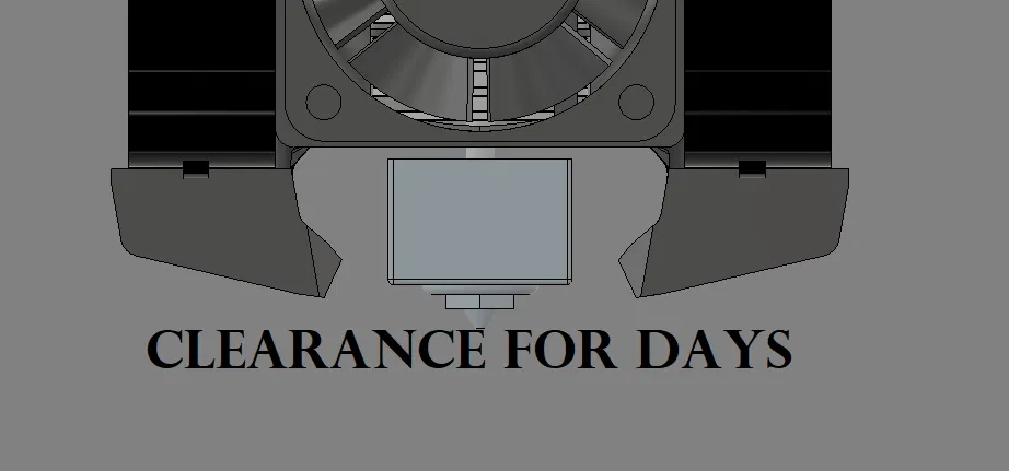 Camaro này thực sự giúp giảm kẹt đầu phun. Phần dưới cùng của bộ tản nhiệt bộ đùn có luồng không khí dồi dào tập trung vào nửa dưới của các cánh tản nhiệt gần nguồn nhiệt. Quạt thổi quanh hầu hết các bộ phận của khung, giữ cho nó đủ mát để sử dụng PLA+ để gắn bộ đùn. Có khoảng trống để xoay khối gia nhiệt của bạn ra phía sau xe đẩy, cho phép xem nhiều hơn tới 80%. Ống dẫn khí làm mát ở xa nhưng tập trung gần chân vòi phun.