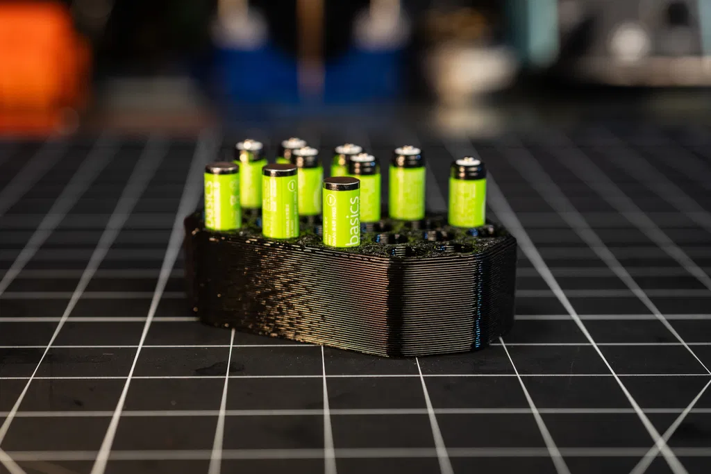 Chứa 22 pin AAA. Đúng là có mấy cái đế pin AAA khác xịn sò hơn, nhưng tui làm cái này để tiện sắp xếp pin sạc và theo dõi pin sạc/pin hết dựa vào cách đặt pin. Có file chỉnh kích cỡ theo ý muốn.