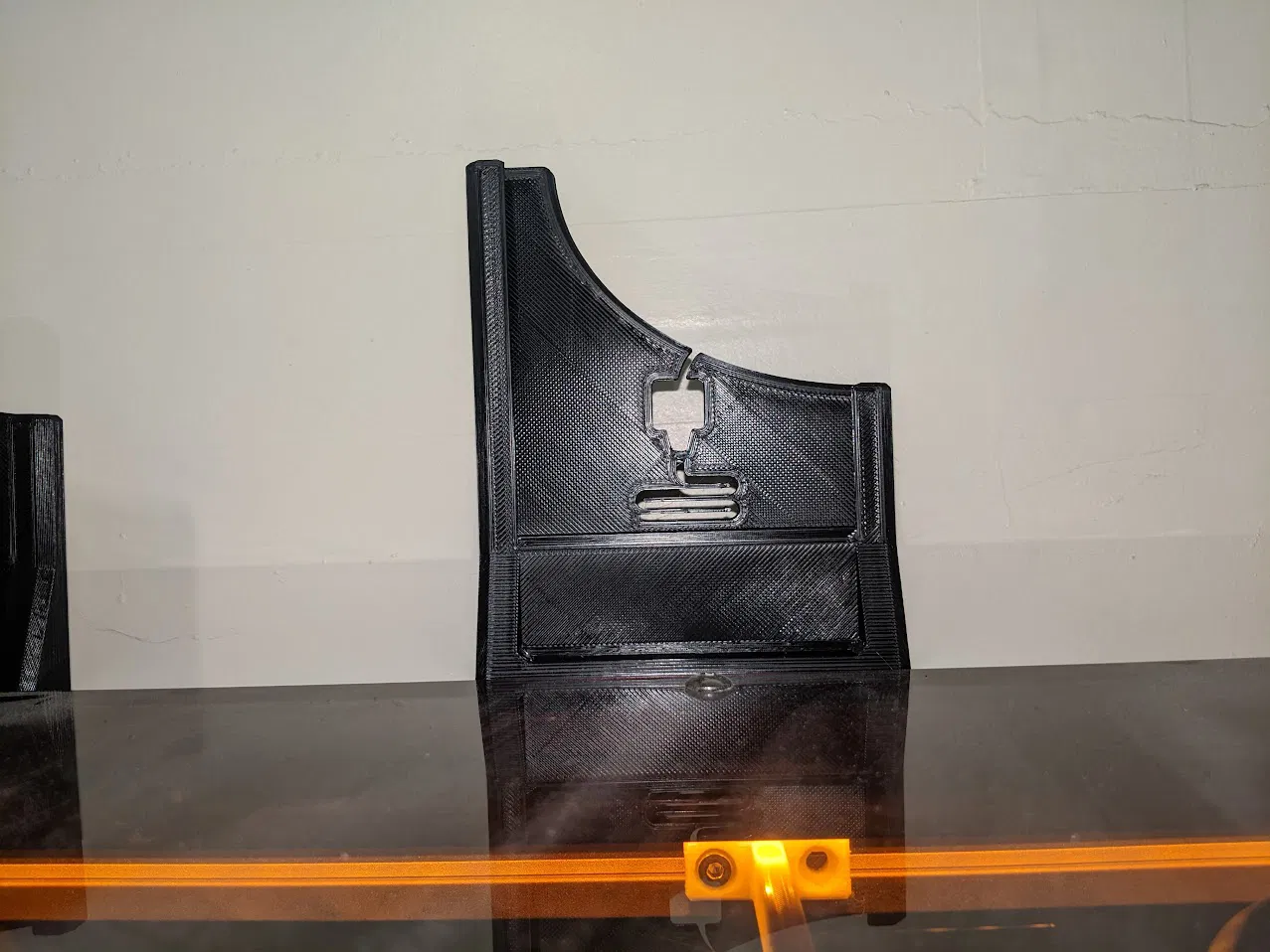 Tui mê cái bộ tool holder thay nhanh cho con Snapmaker của tui lắm, mà tui nhận ra là nó cho tui cơ hội tốt để giải phóng chút không gian lưu trữ trong cái ngăn kéo mà tui hay để mấy cái đồ nghề với đầu máy dự phòng. Với cái cách bố trí khu vực làm việc của tui, tui không thích treo đồ lên tường lắm (nếu mà mấy bồ muốn làm vậy thì tui đề nghị cái Snapmaker Quick Swap Toolhead Wall Mount by Jason Harkins | Download free STL model | Printables.com), mà cũng không treo được ở phía sau máy (nếu mà mấy bồ muốn làm vậy thì tui đề nghị cái Snapmaker Tool holster by MrGPM - Thingiverse). Tui lấy cảm hứng từ cả hai cái thiết kế đó để tự làm phiên bản của riêng mình từ đầu, cái này đặt mỗi cái đầu máy phía trên và bên ngoài máy, nhưng giữ nó hoàn toàn nằm trong phạm vi của cái vỏ máy để tiết kiệm không gian tiệm. Đặc biệt là cái kiểu dáng nó lấy nhiều từ thiết kế của MrGPM vì tui thích cái cách mà nó căn cái mặt sau dễ dàng. Lợi ích của việc sử dụng cái thanh ray của vỏ máy là cái thiết kế này không cần ốc vít. Tui cũng trang trí mỗi cái holder bằng một cái icon thể hiện đầu CNC, Laser và In 3D để nhận diện trực quan cho mấy bồ biết đầu nào đang gắn trên máy. Tui thấy là cái rãnh T ở đế là cái duy nhất cần một chút support nhỏ để tránh nó bị xệ và mất dáng, vì nó cần được căn chỉnh để khớp với cái góc 45 độ trên cái thanh L phía sau của vỏ máy.
