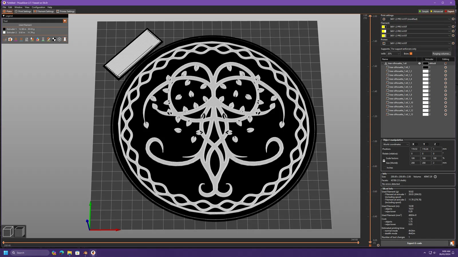 Mô hình Cây Sự Sống 1, là một tác phẩm trang trí nghệ thuật treo tường độc đáo cho văn phòng hoặc nhà cửa. Dễ in với nhiều tùy chọn cho máy in đa hoặc đơn vật liệu. Kích thước 200x200mm, dày 2mm, thời gian in khoảng 4 tiếng.