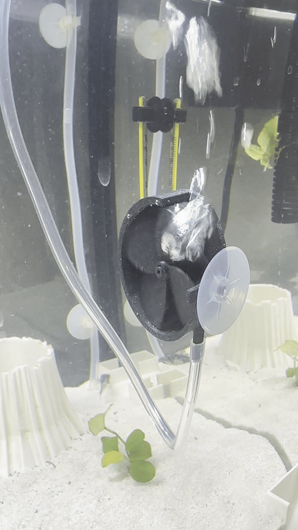 Tiếc là do hạn chế của bọt khí nên nó không quay đủ nhanh để thay thế cho bơm tuần hoàn xịn được. Nhưng mà nếu anh em cần tạo một chút luồng nước nhỏ hoặc vừa thì cái này làm được.