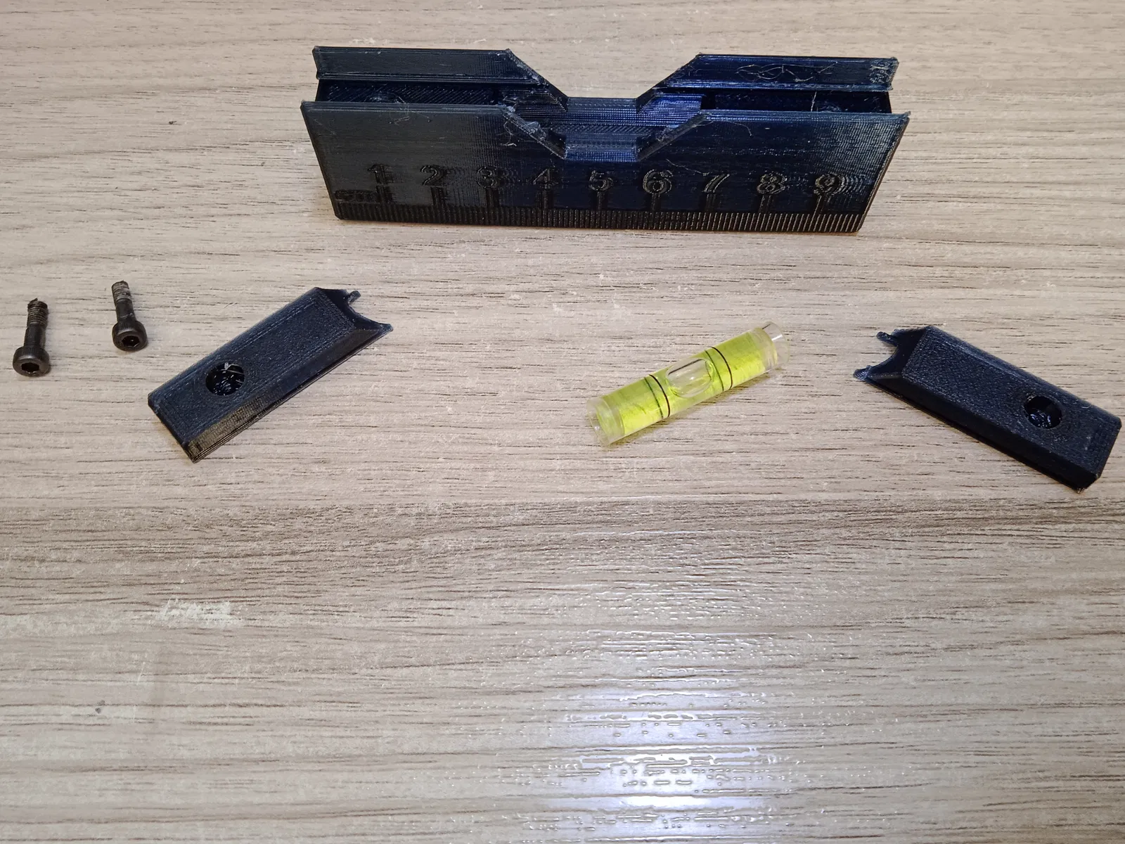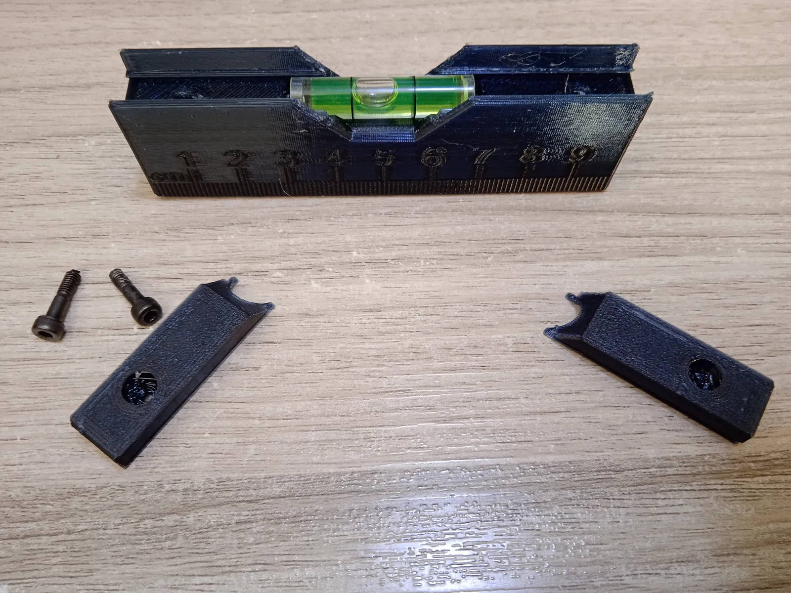Tui in bằng PETG với Ender 3 đầu phun 0.6mm, mà PLA cũng xài ngon lành. Lúc cắt lớp thì nhớ đặt mấy cái nêm ngửa lên, với cho cái đáy của cái level chạm mặt bàn in nha. Làm vậy là khỏi cần support, mà cái đáy nó cũng phẳng nữa.