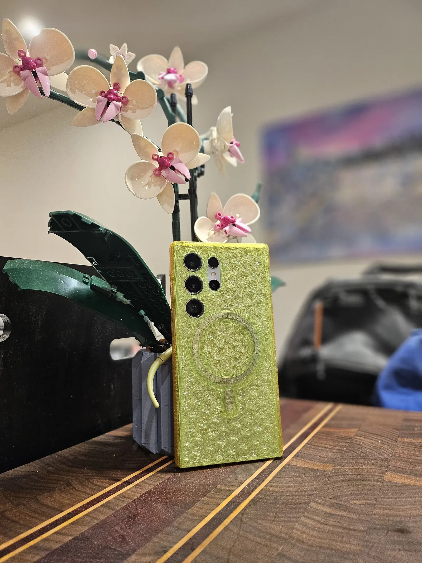 Ốp lưng SnapArmor MagSafe cho Samsung Galaxy S24 Ultra, được thiết kế để in bằng nhựa dẻo TPU. Hướng dẫn chi tiết cách gắn nam châm MagSafe và lưu ý quan trọng về Spen. Bao gồm file Gcode có sẵn cho đầu phun 0.4mm và 0.6mm.