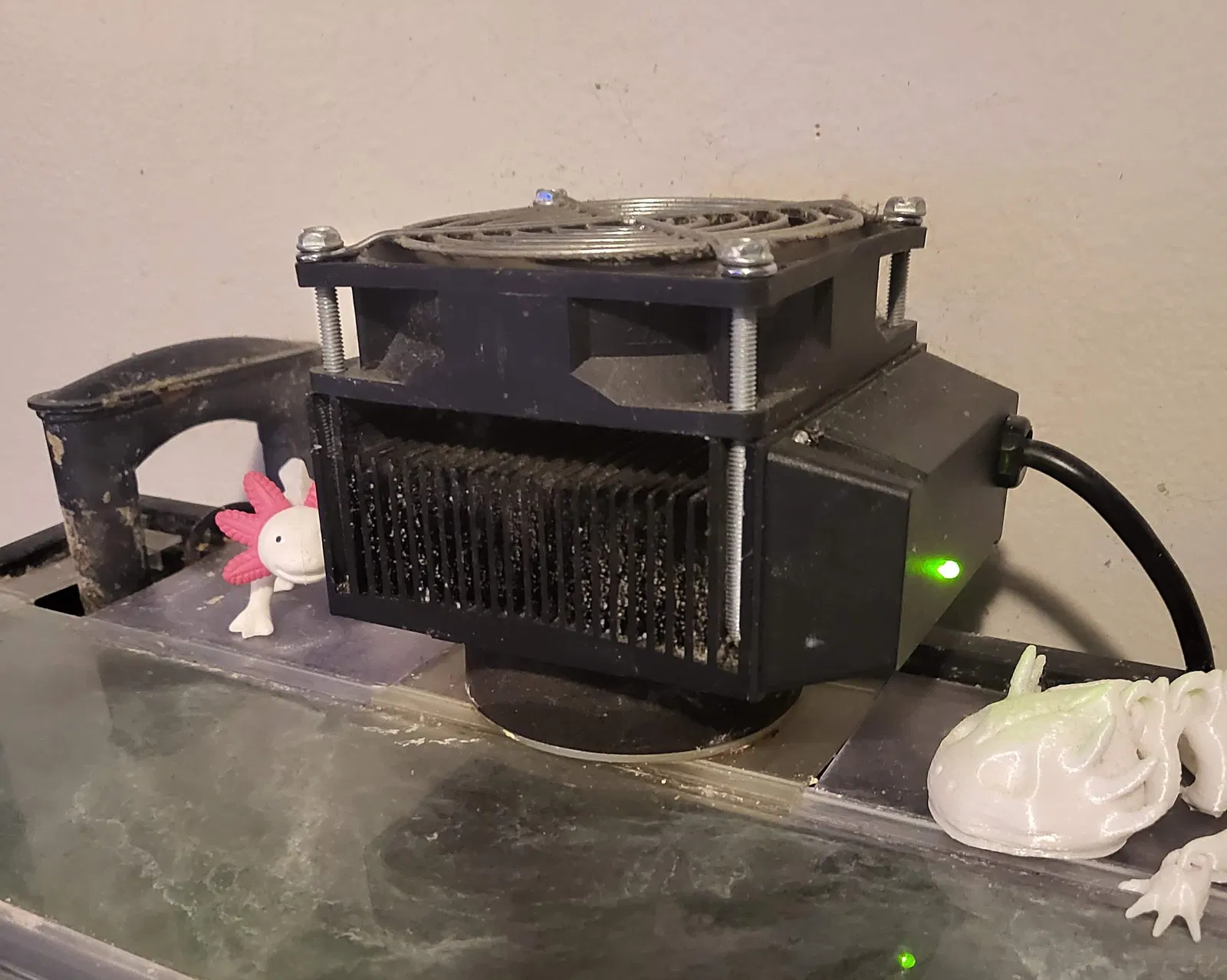 Cái bản remix này là một ví dụ cho thấy bạn có thể làm gì với cái tấm chắn nước (splash guard) in được này để tùy chỉnh nó cho phù hợp với nhu cầu bể cá của bạn. Một cái lỗ khoét cho phép bạn gắn thiết bị hoặc luồn dây ống vào. Cái này nên tương thích với nắp kính gập Aqueon Versa Top và các loại nắp kính tiêu chuẩn khác có độ dày 3/16 inch.