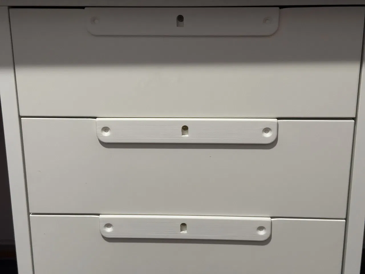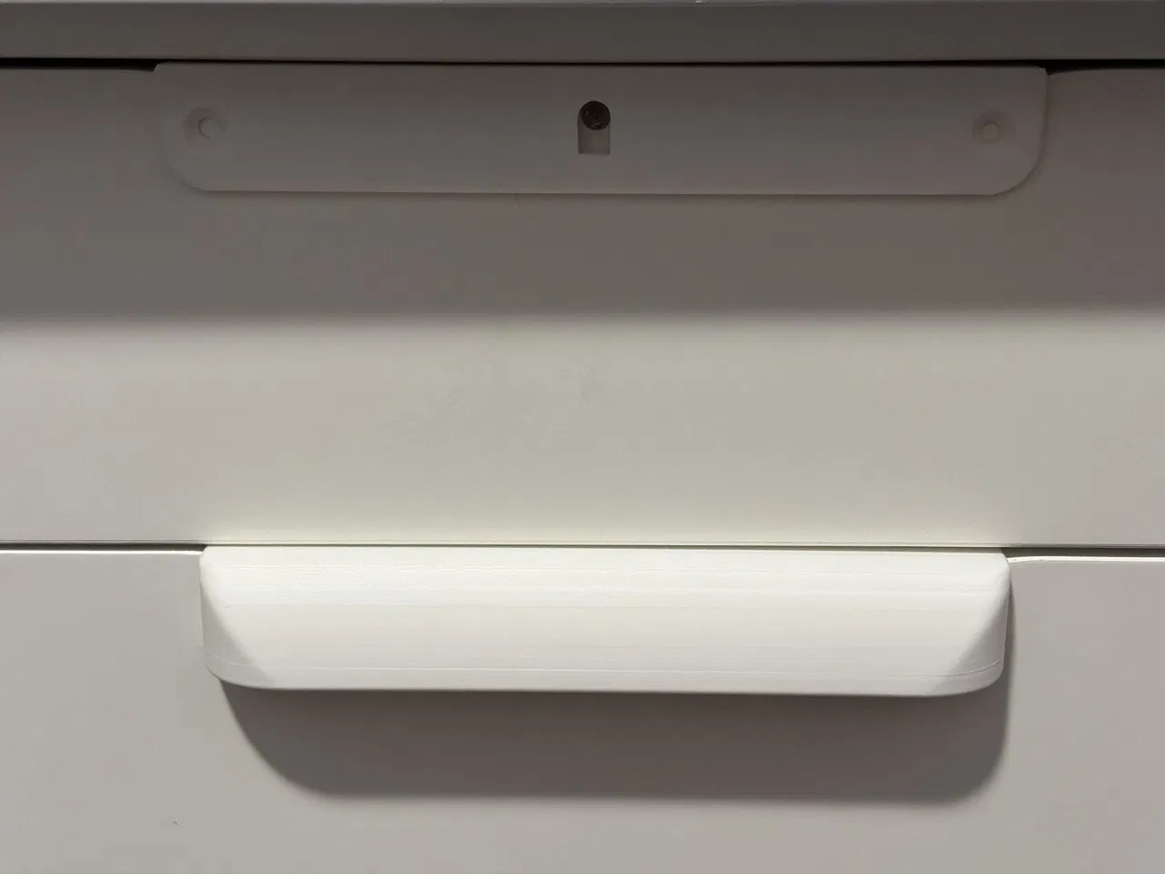 Bộ Tay nắm này được gắn theo kiểu “lộn ngược” nên tay nắm sẽ quay vào trong. Phần mặt phẳng bên trong có thêm một tính năng mới được remixed vào - Khóa. Tui biết là cái khóa này không cứng cáp lắm - nhưng nó đủ nhỏ và đủ để em bé hoặc trẻ nhỏ không thể tự mở ngăn kéo ra được nếu không có chìa.