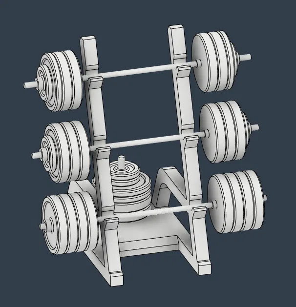 Mô hình để bàn theo dõi thành tích (PR) của bạn cho ba bài tập bất kỳ bạn thích. Mô hình gồm thanh tạ và các đĩa tạ nhỏ, cần dán lại sau khi in và có thể cần chỉnh cài đặt in để đảm bảo độ khít.