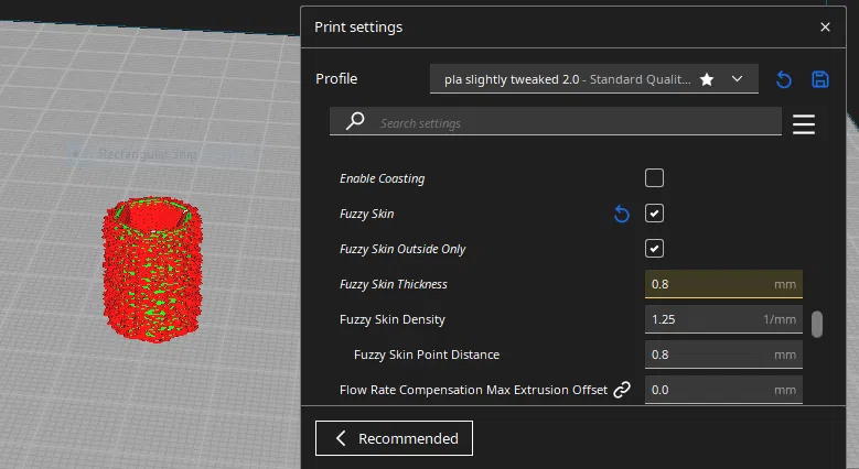Cái cục vặn vít lục giác này nè, mấy ông thử xài cái chế độ fuzzy skin của Cura coi có tăng độ bám ngon hơn không, tui sẽ post cái hình chụp màn hình cài đặt của tui cho coi.