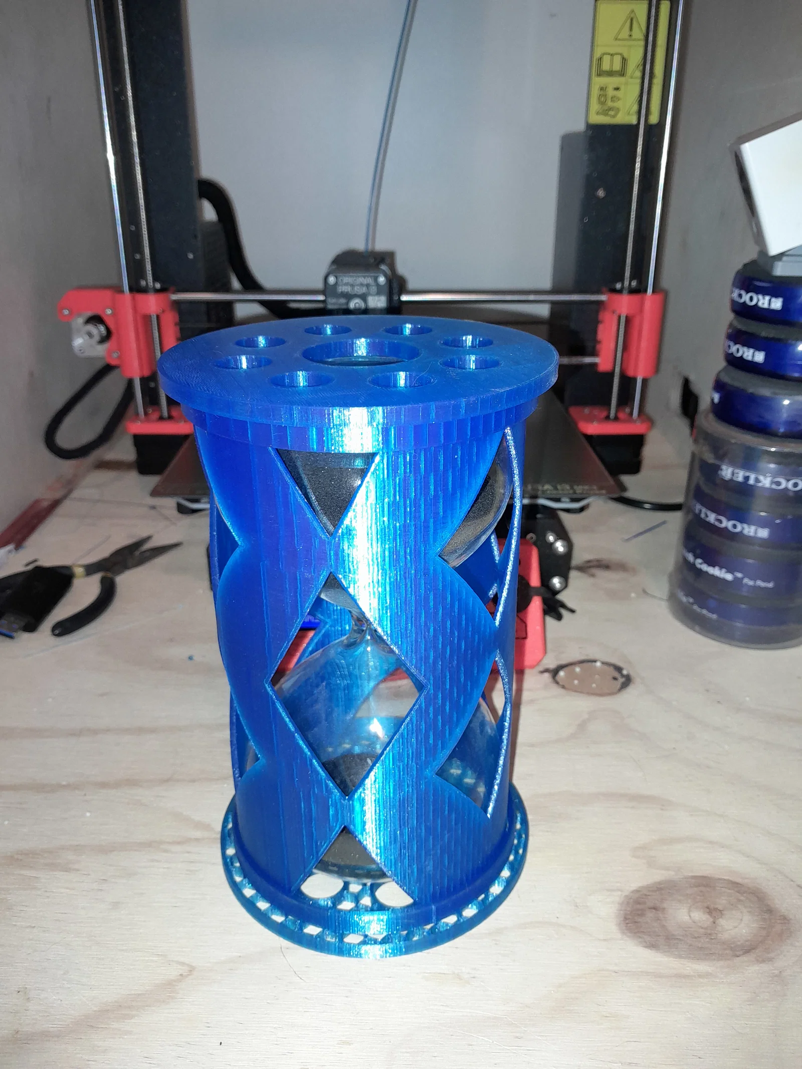 Giữ cho đồng hồ cát của bạn an toàn. Nếu bạn tháo bỏ phần viền trên và dưới, bạn có thể thấy lớp lưới hình lục giác (hex infill) mà bạn đã chọn.