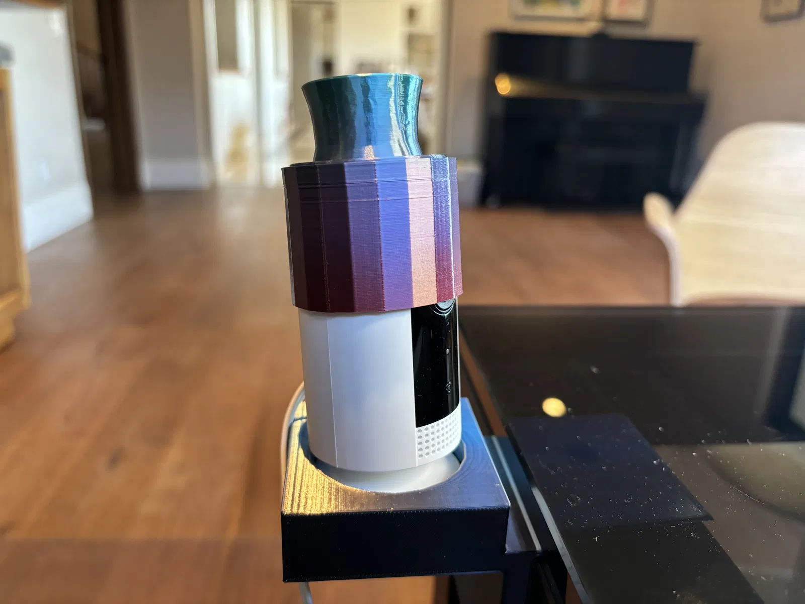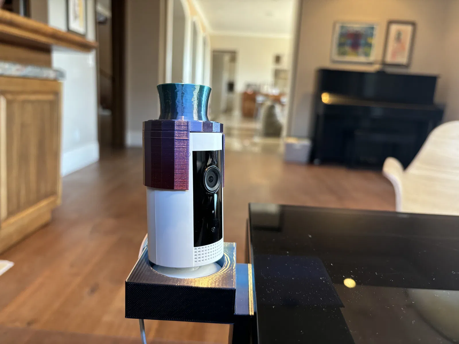 Cái "nón" che camera đơn giản, vui nhộn mà vẫn hữu dụng này có thể dùng cho mọi loại camera Ring trong nhà luôn nha! Thay vì phải rút dây hay xoay camera đi chỗ khác khi cần chút riêng tư, giờ bạn chỉ cần xoay cái "mũ" này là xong. Nên in với viền (brim) và vật liệu hỗ trợ (supports). Thời gian in khoảng 3 tiếng 4 phút.
