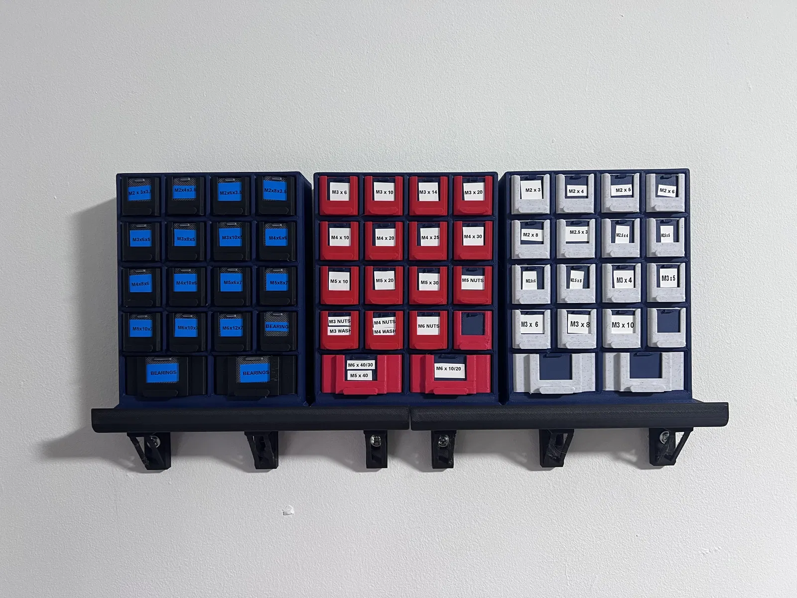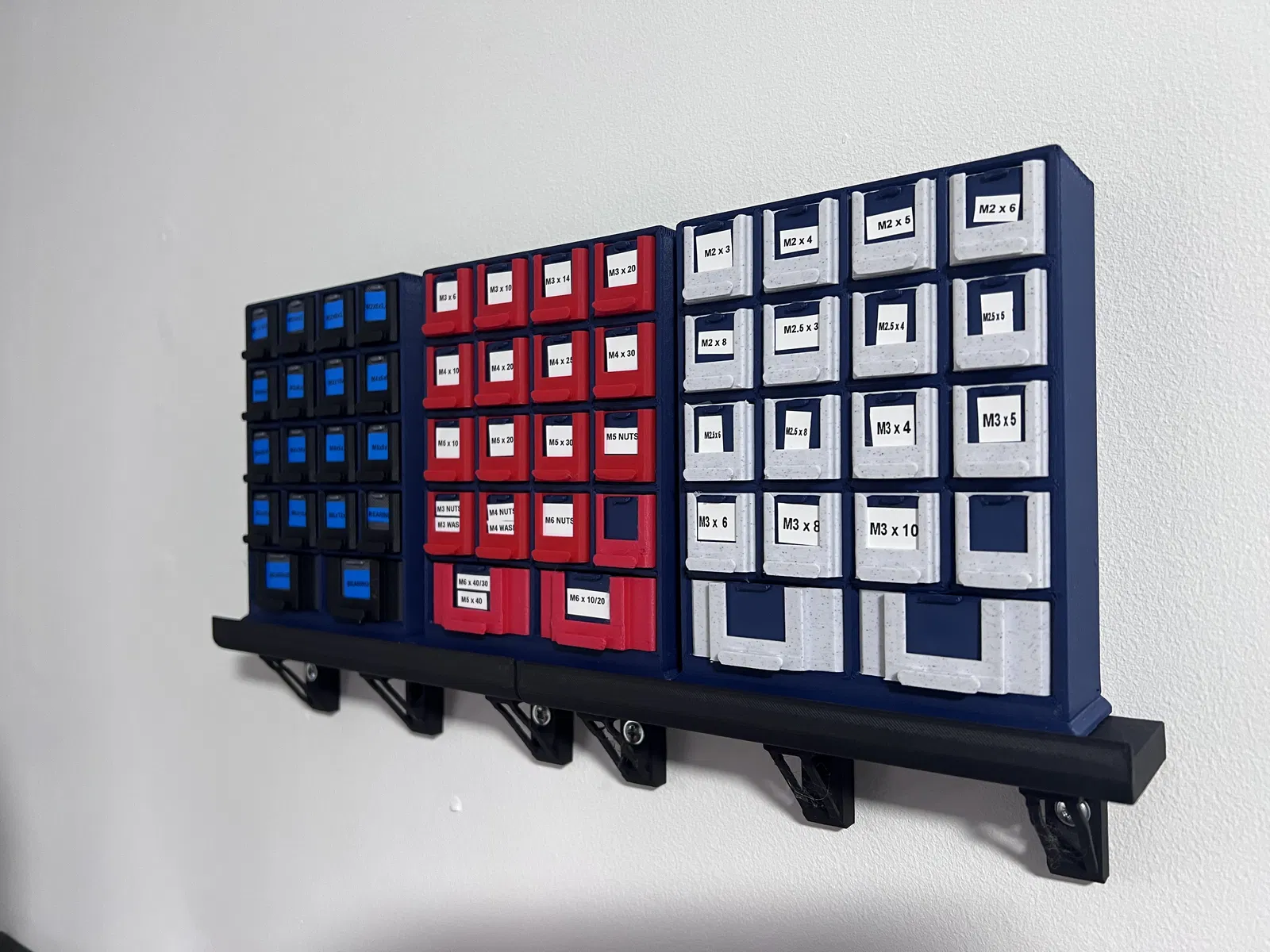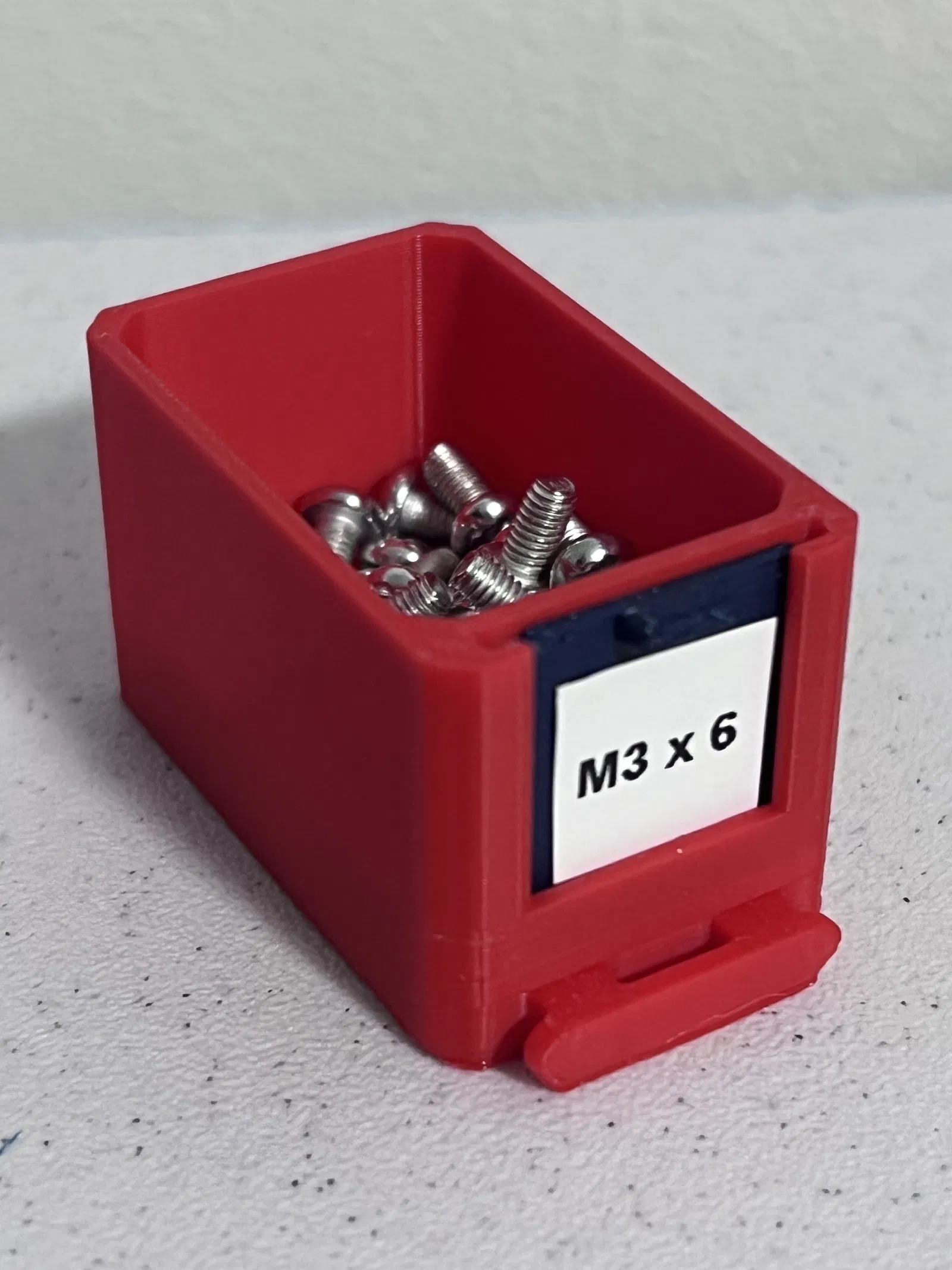 Tủ đựng ốc vít, bu lông nhỏ gọn, để bàn, có thể treo tường. Gồm 16 hộc 25mm và 2 hộc 50mm. Kích thước 155x120x40mm. Có thể in nhãn dán tên theo kích thước 18x18mm (hộc nhỏ) và 25x20mm (hộc lớn).