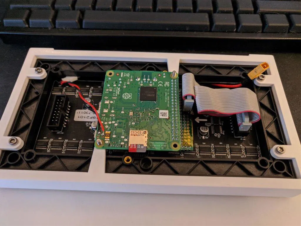 Bộ vỏ 2 mảnh cho màn hình LED 64x32 giá rẻ, kèm chỗ gắn Raspberry Pi 3A+. Bao gồm danh sách vật tư, ghi chú lắp ráp chi tiết và cài đặt in. Cần tháo đầu nối nguồn Pi và hàn dây trực tiếp để lắp vừa. Hoàn hảo cho các dự án hiển thị LED tùy chỉnh.