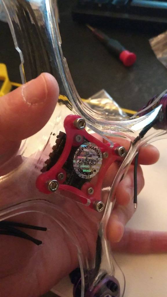 In ra, cắm các con vít M2 của bạn hướng lên trên và gắn stack của bạn như bình thường như thể đó là đáy khung. Đặt toàn bộ lên khung và vặn các con vít M3 của bạn lên, cố định bằng đai ốc.