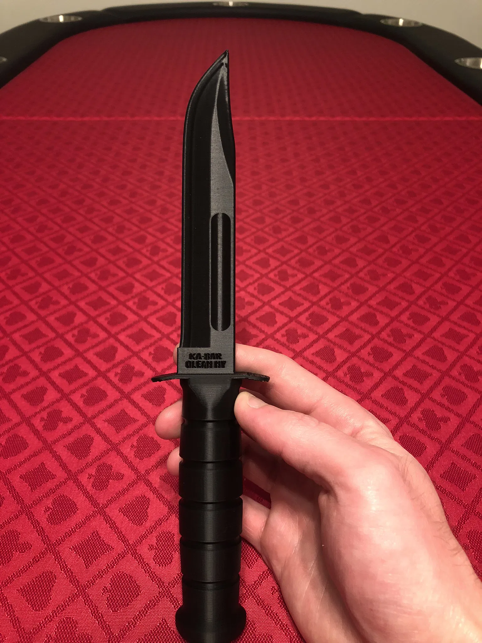 Mô hình dao KA-BAR được làm theo tỷ lệ. Bản in .3mf được thu nhỏ để vừa máy in Bambu P1S, có thêm chữ khắc. Phiên bản cập nhật có thể in tỷ lệ đầy đủ. Hướng dẫn in chi tiết kèm theo.