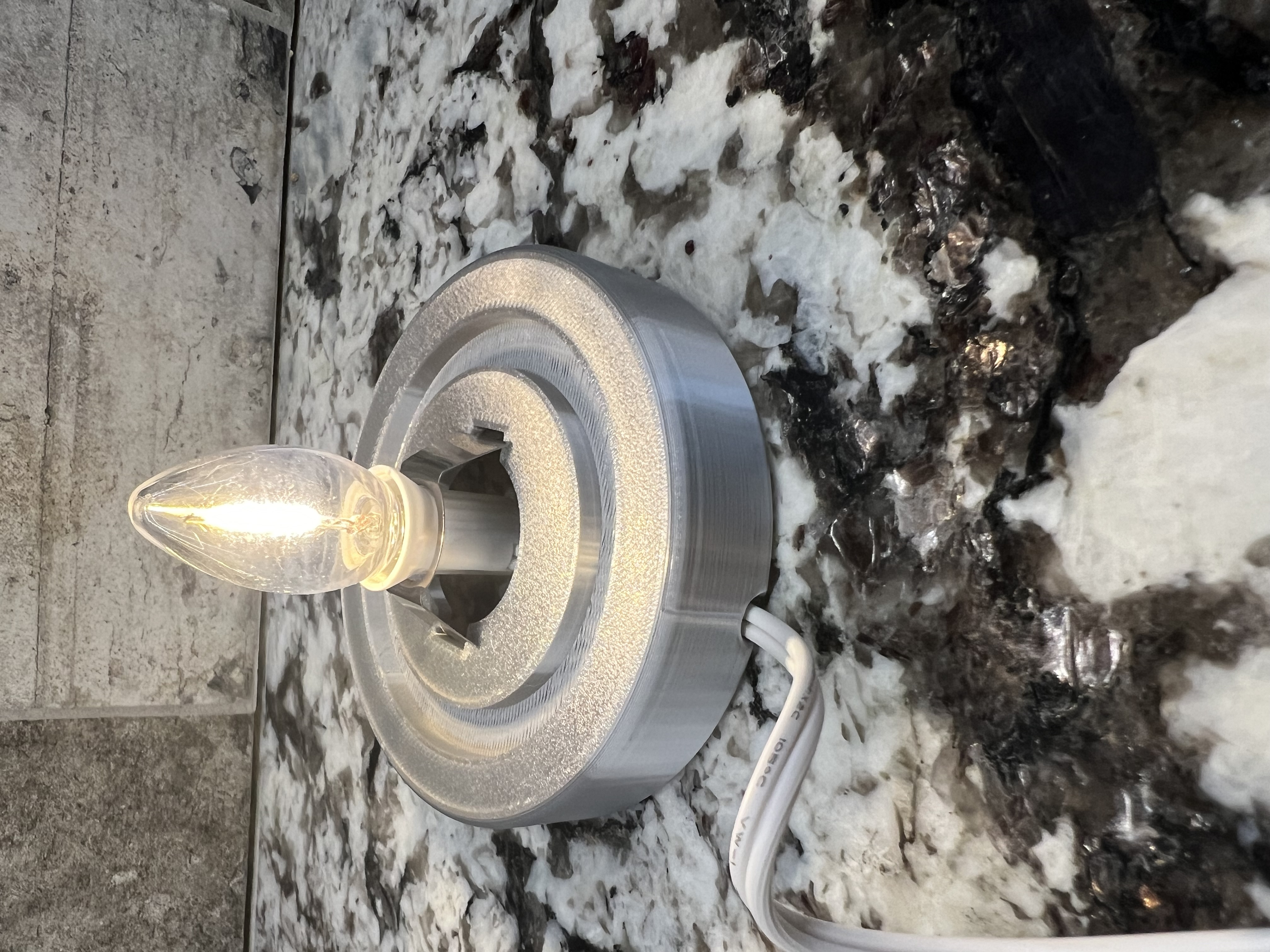 Chân đế cho quả địa cầu lithophane trông gọn gàng, sử dụng bộ đèn LED giá rẻ không tỏa nhiệt. Có thể không cần dùng vật liệu hỗ trợ nếu in úp ngược, nhưng nếu có thì sẽ giúp bề mặt bên trong rãnh đẹp hơn. In bằng sợi PLA lụa. Sẽ rất đẹp nếu in bằng PLA vân gỗ rồi chà nhám và nhuộm màu. Được thiết kế để phù hợp với kích thước quả địa cầu lithophane tiêu chuẩn được tạo ra từ lithophanemaker.com. Nếu bạn thay đổi kích thước gờ hình trụ, chân đế này sẽ không còn vừa nữa. Bạn có thể giảm độ dày hình trụ xuống 4mm hoặc kéo dài ra để làm nó cao hơn khi thiết kế quả địa cầu trên trang web của họ. Dưới đây là liên kết liên kết đến bộ đèn mà sản phẩm này được tạo ra.