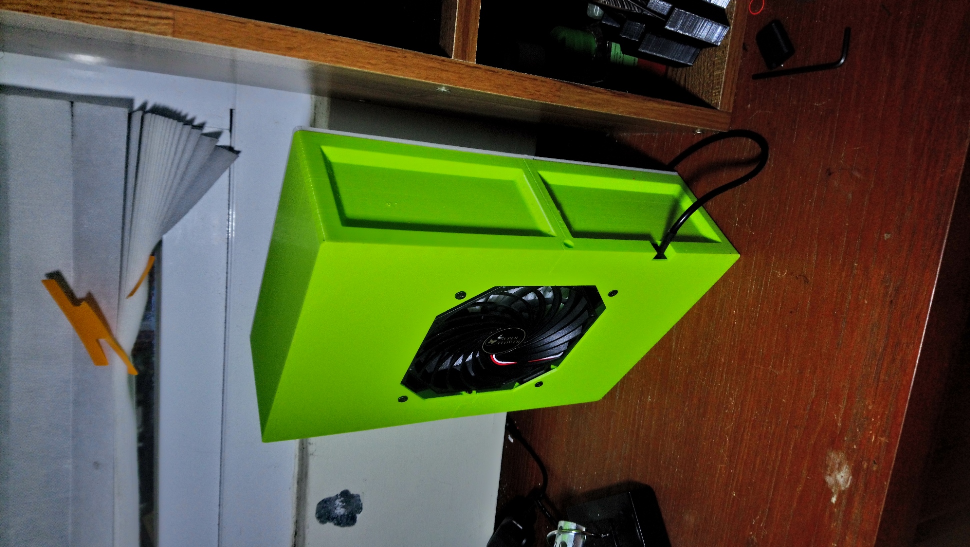 - Quạt máy tính 120×120×25mm × 1 (quạt dày hơn cũng được miễn là cánh quạt không chạm vào màng HEPA);