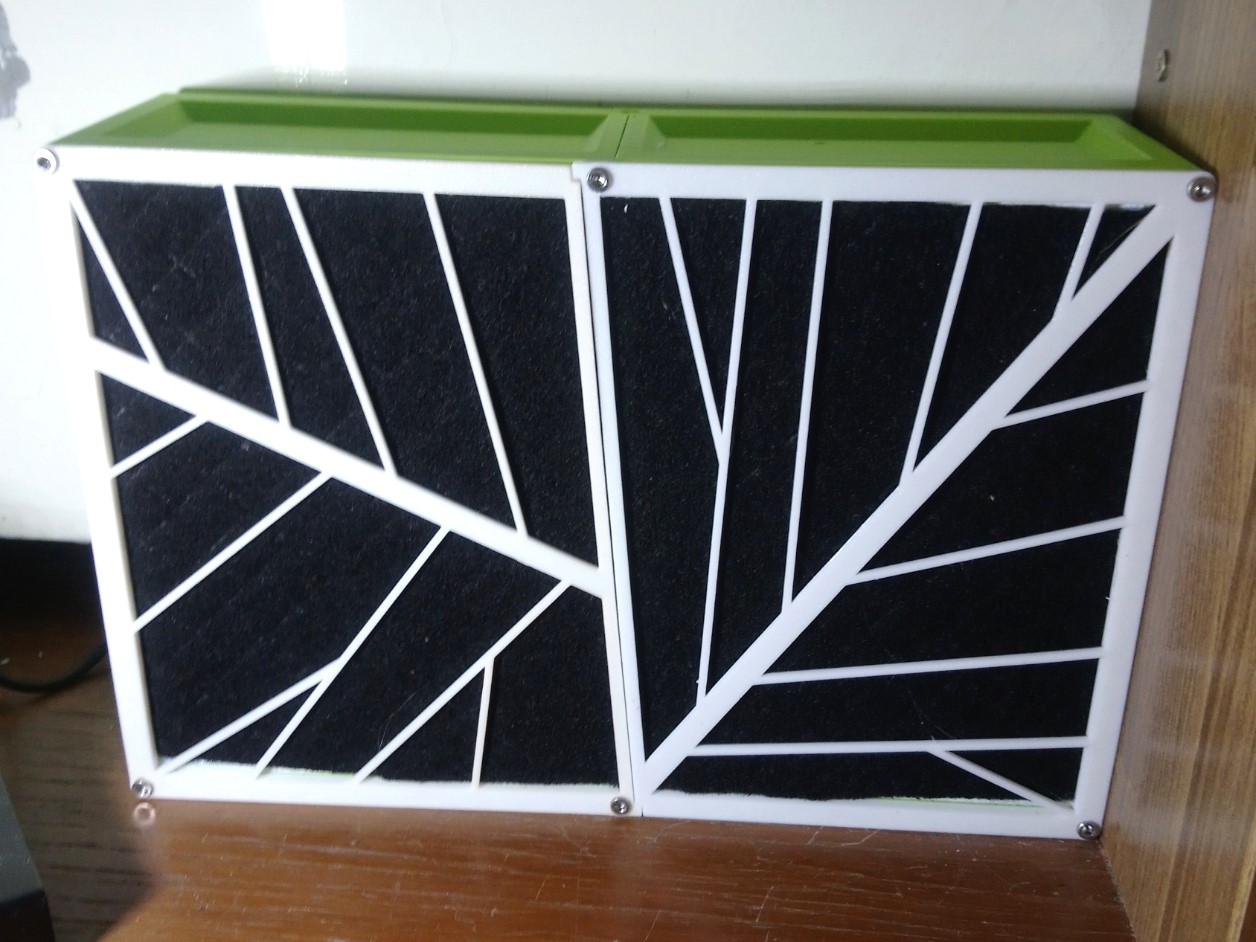 Hộp lọc không khí này dùng cho màng lọc HEPA HRF-R1, tấm than hoạt tính và quạt 120mm. Hộp được chia đôi để vừa khay máy in Prusa MINI. Lưu ý: hiệu quả hoạt động chưa rõ.
