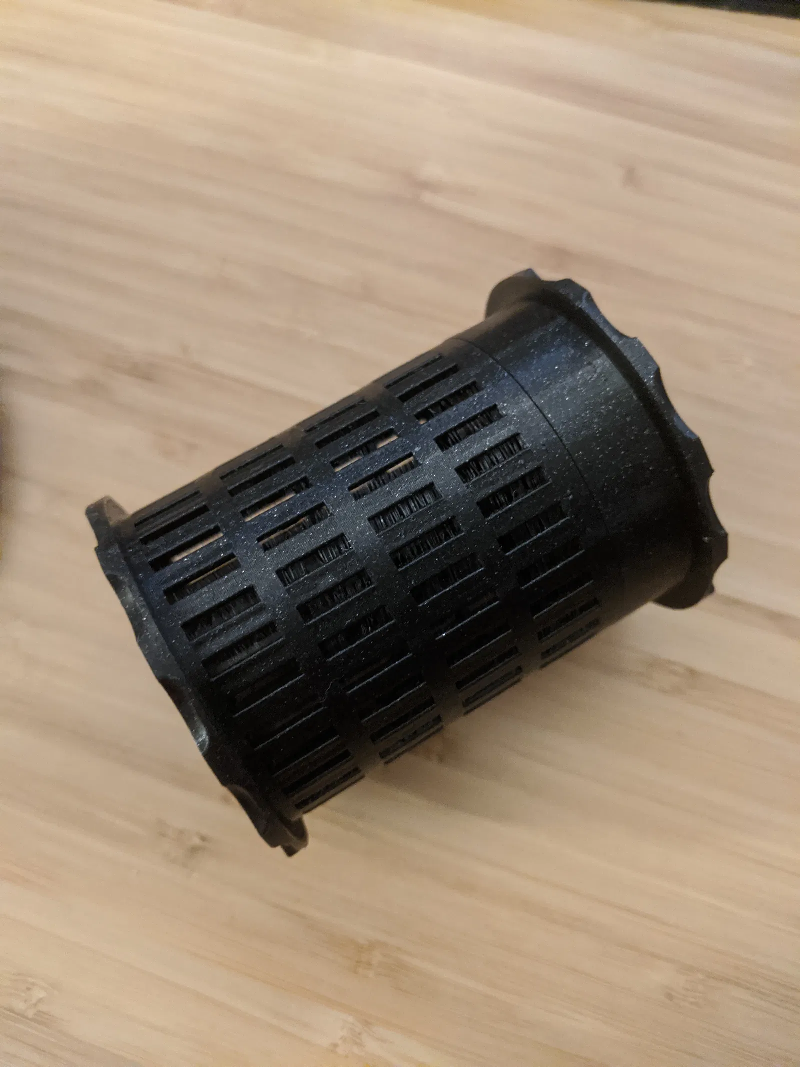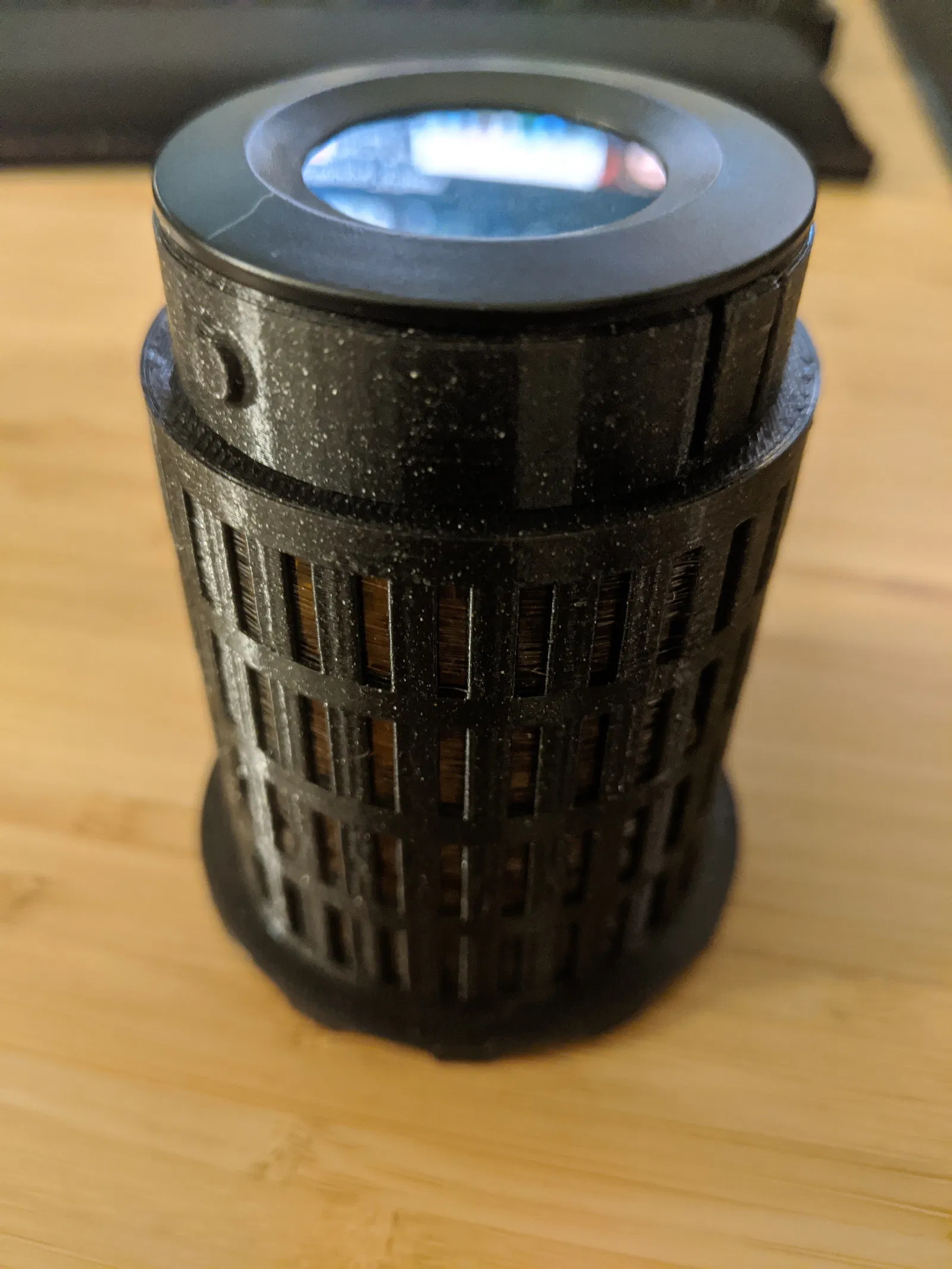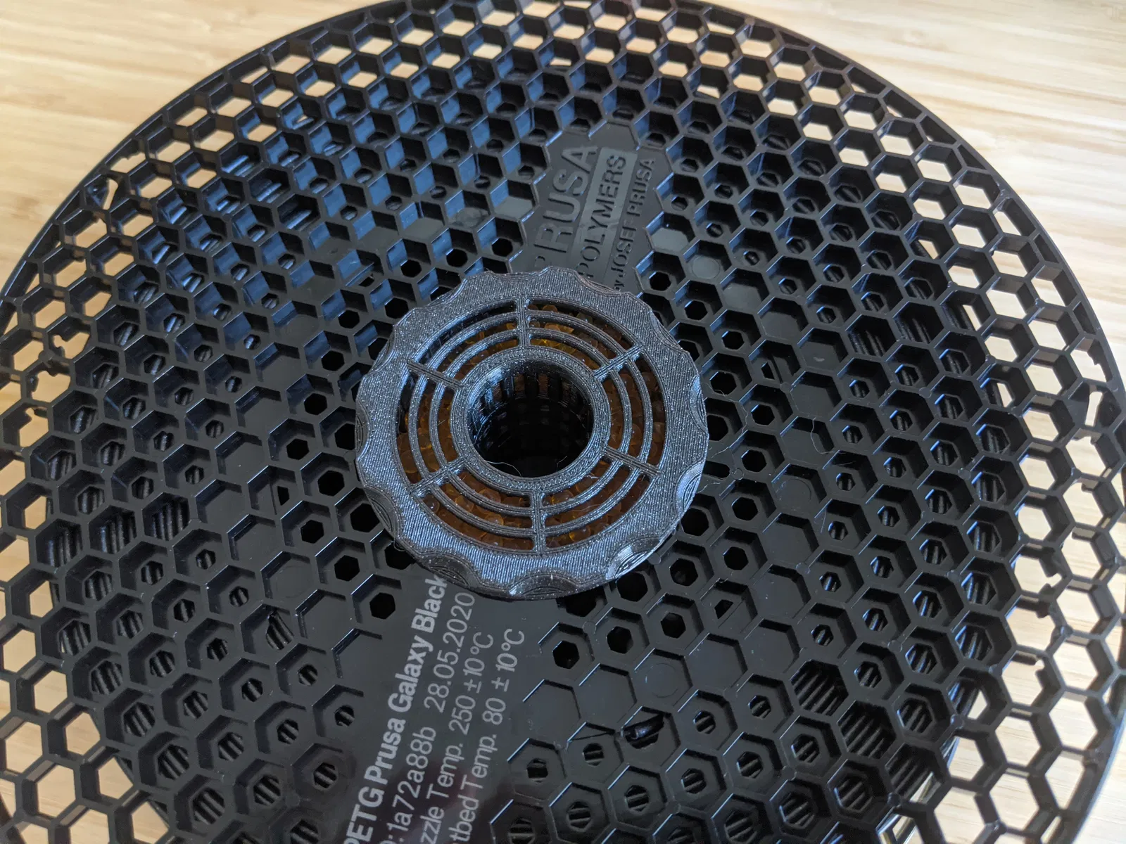 Một cái hộp đựng chất hút ẩm nữa, lắp vừa khít vào trong cuộn Prusament. Nó chứa được 2+ mm gel silica chỉ thị màu và một cái đồng hồ đo độ ẩm tròn thông thường để đo nhiệt độ và độ ẩm. https://www.amazon.com/gp/product/B01I5Y2DG6/ref=ppx_yo_dt_b_asin_title_o02_s00?ie=UTF8&psc=1 https://www.amazon.com/gp/product/B07GR67G1M/ref=ppx_yo_dt_b_asin_title_o02_s01?ie=UTF8&psc=1 Đầu tiên, đổ đầy chất hút ẩm vào hộp đến đầu của cái nón ở giữa, sau đó gắn đồng hồ đo độ ẩm vào. Bạn có thể trượt hộp đựng chất hút ẩm vào và dùng nắp để giữ nó chắc chắn bên trong cuộn dây. Nắp được vặn 1/4 vòng để cố định vào hộp. Thiết kế này được lấy cảm hứng từ: ### Hướng dẫn in In trên máy Prusa Mini bằng PETG, phần hộp chính nên in với lớp dày 0.2 mm từ 0-3 mm và 55-71 mm, phần giữa với các khe nhỏ có thể in ở 0.25mm (3mm-55mm) để tối ưu thời gian in. In cả hai bộ phận với mặt úp xuống (dễ nhận biết từ các khía để cải thiện độ bám) Nói nhỏ nè: Hiện tượng PETG bị kéo sợi lại có lợi cho chúng ta và giúp tạo ra một mạng lưới "sợi" dày đặc để giữ các hạt silica gel nhỏ, cái này là cố ý đó...🙂