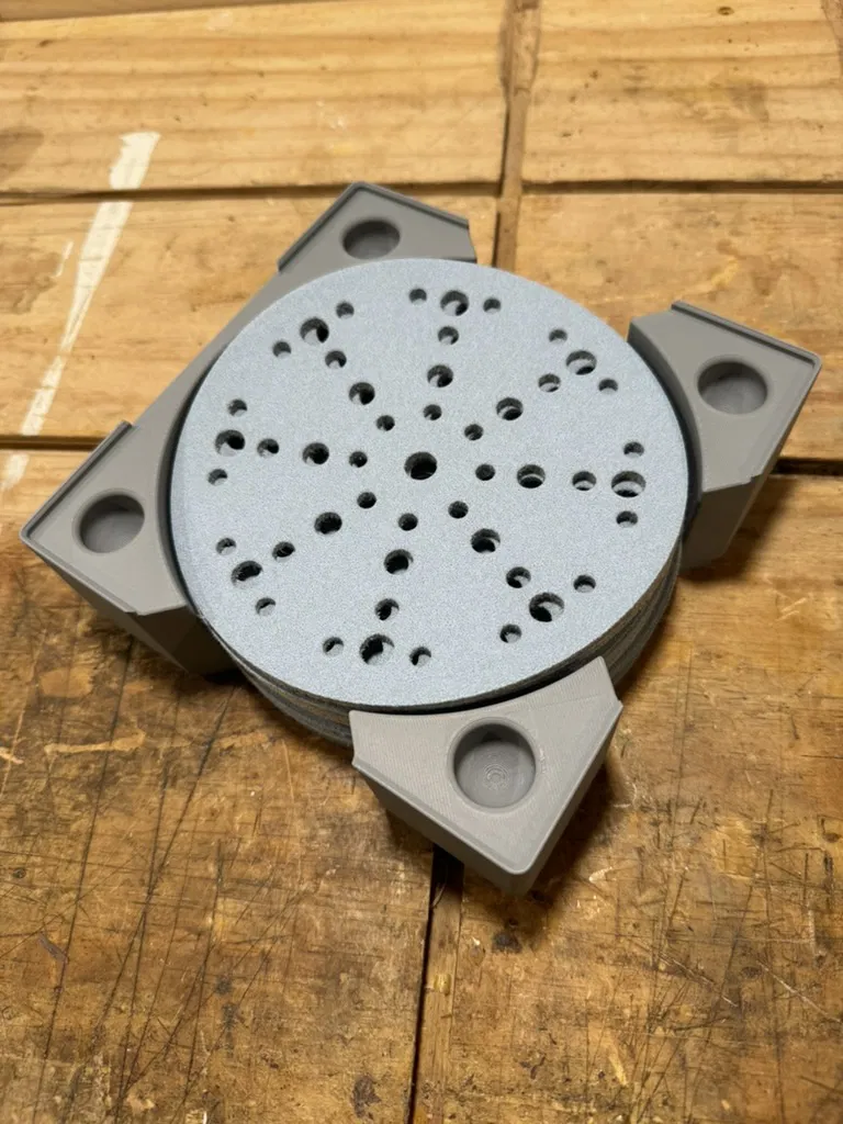 Khuôn giấy nhám cho đĩa giấy nhám festool 150mm. Được thiết kế để dễ dàng nhấc theo chiều dọc hơn, và để giữ khuôn có thể được dán nhãn từ trên xuống, giúp nhận dạng bằng cách nhìn thẳng xuống.