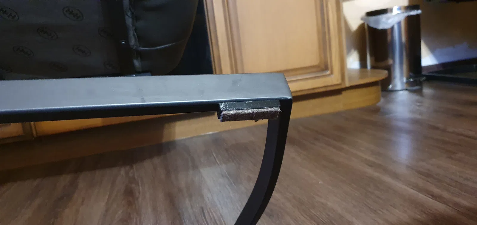 Những miếng lót nhựa trong nguyên bản đã được dán thêm miếng mút bởi nhà cung cấp nội thất để ngăn ngừa trầy xước trên sàn nhựa vinyl.
