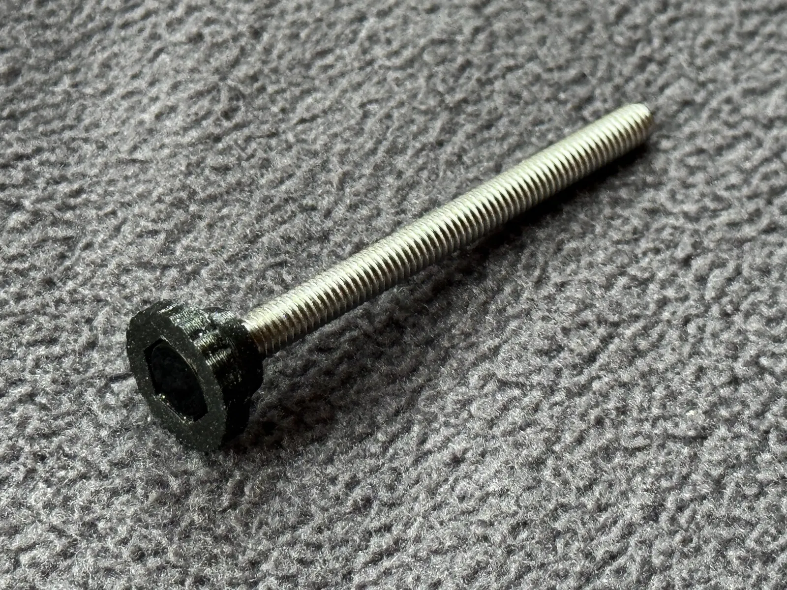 - Khớp nối cho bộ chuyển đổi băng đạn không phù hợp với tôi lắm, vì vậy tôi đã chọn một cách khác. Tôi chỉ cần mở rộng lỗ trên Lower Receiver lên 5,5mm ở một bên và lắp một đai ốc nung chảy 4mm. Kèm theo đây là một ốc vặn ngón cái được giữ ở mức nhỏ nhất có thể cho vít lục giác M4x50. Cùng nhau, chúng nằm bằng phẳng ở phía đai ốc nung chảy. Điều này cho phép thay đổi loại băng đạn nhanh chóng và không cần dụng cụ. Nếu bạn đã in Lower Receiver, bạn có thể khoan lại lỗ bằng mũi khoan kim loại sắc bén. Nếu máy in của bạn được căn chỉnh rất chính xác, bạn cũng có thể in ốc vặn ngón cái ở 98%, khi đó vít sẽ rất chắc.