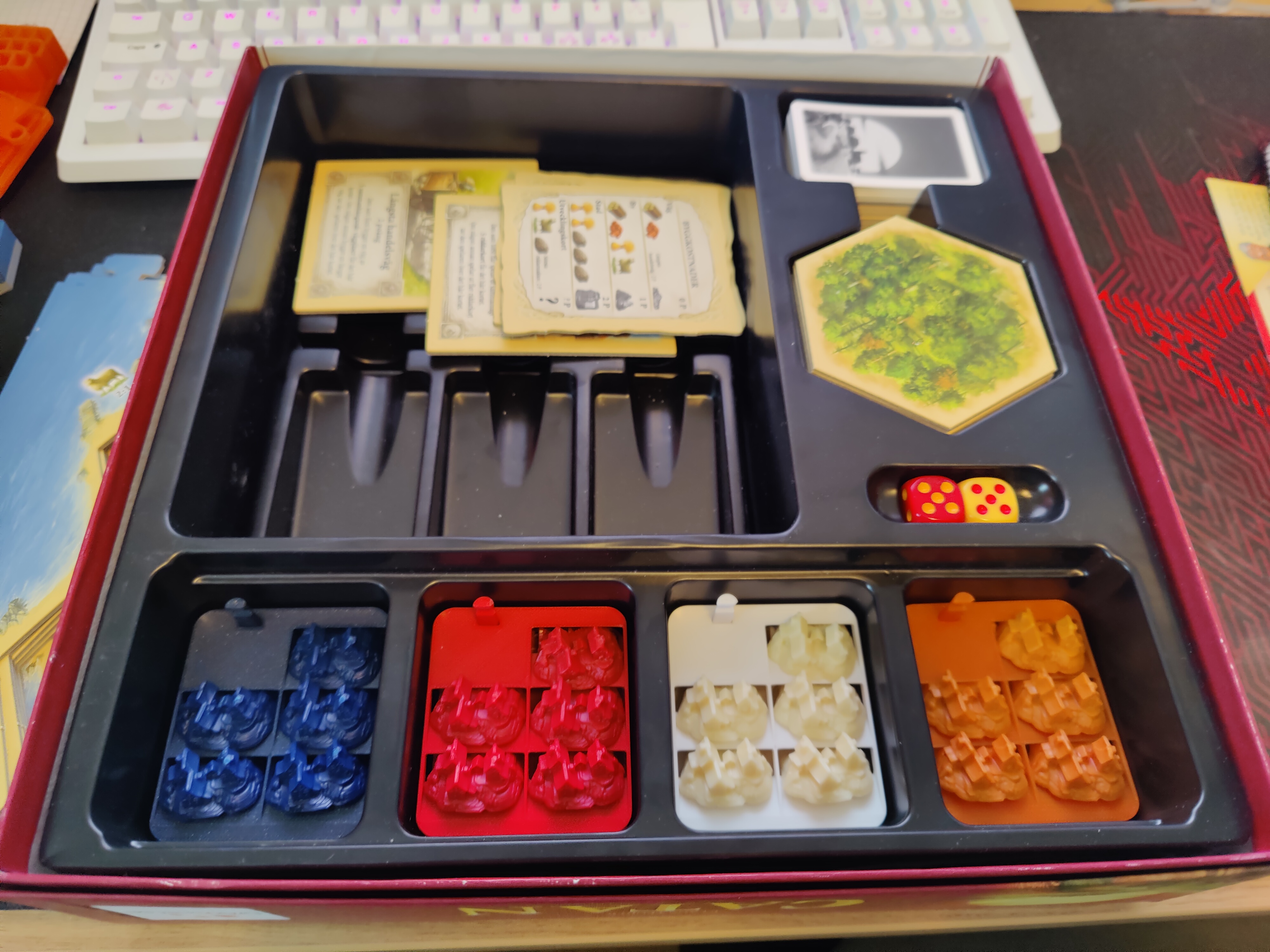 Tui làm cái đế đựng quân Catan này cho phiên bản 2017 vì không tìm được loại phù hợp. Kích thước có thể khác với các phiên bản Catan mới hơn.