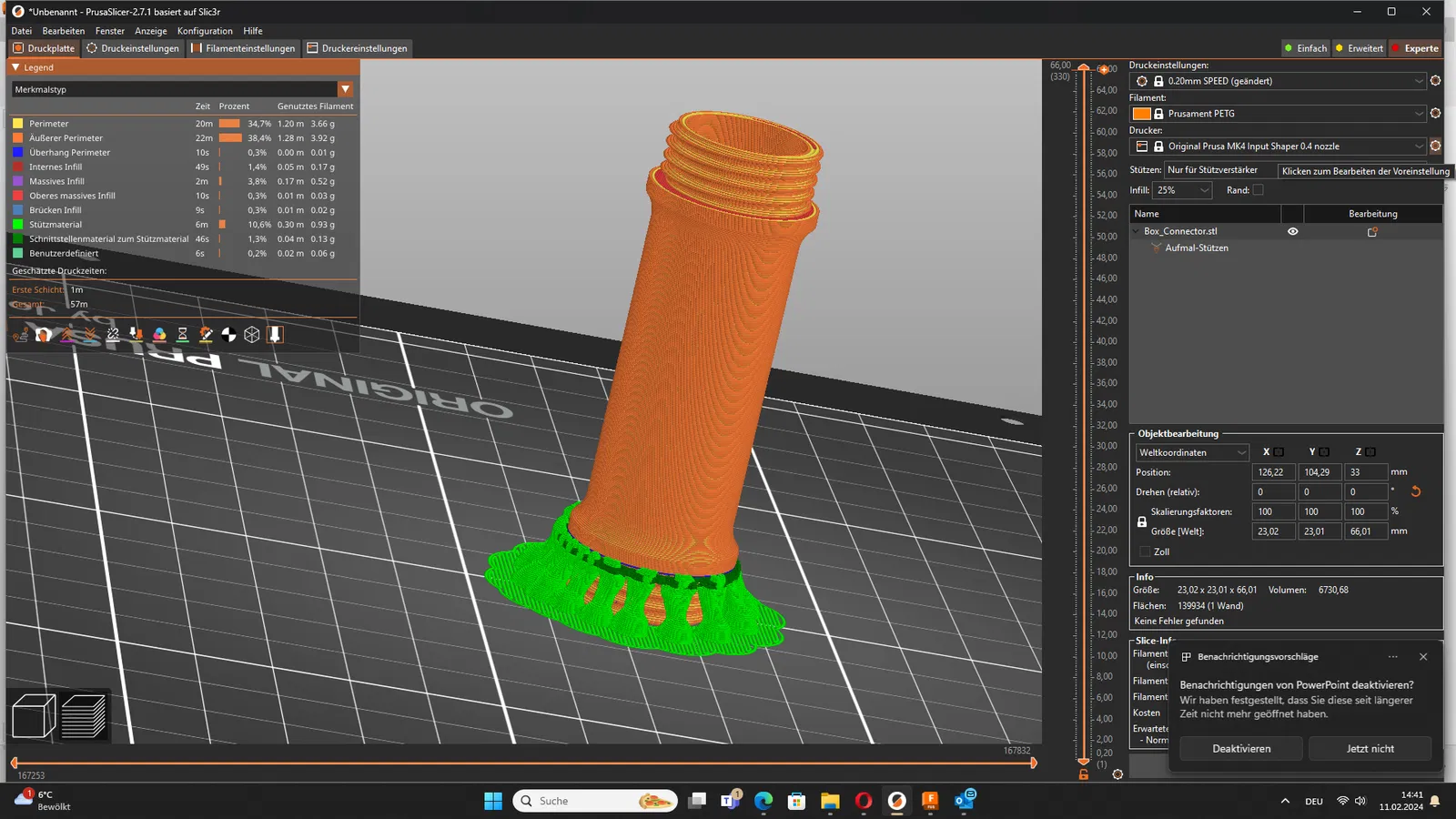 Bạn có thể in bộ nối này bằng PLA hoặc PETG. Bạn sẽ cần một ít vật liệu hỗ trợ (hình). Các mô hình được tạo bằng Fusion 360.