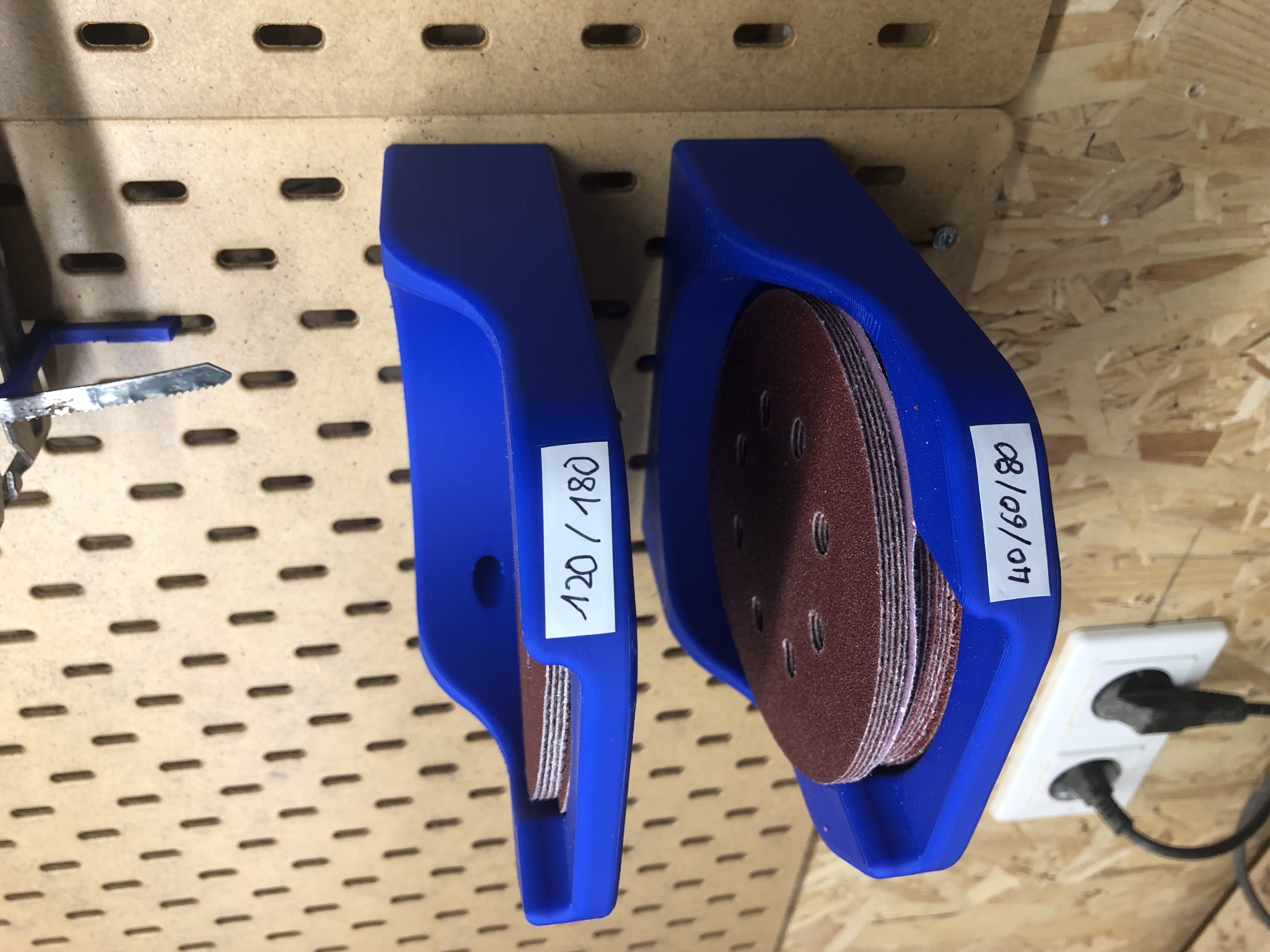 Đây là một cái kẹp giữ giấy nhám đường kính 125mm gắn lên bảng IKEA Skadis.