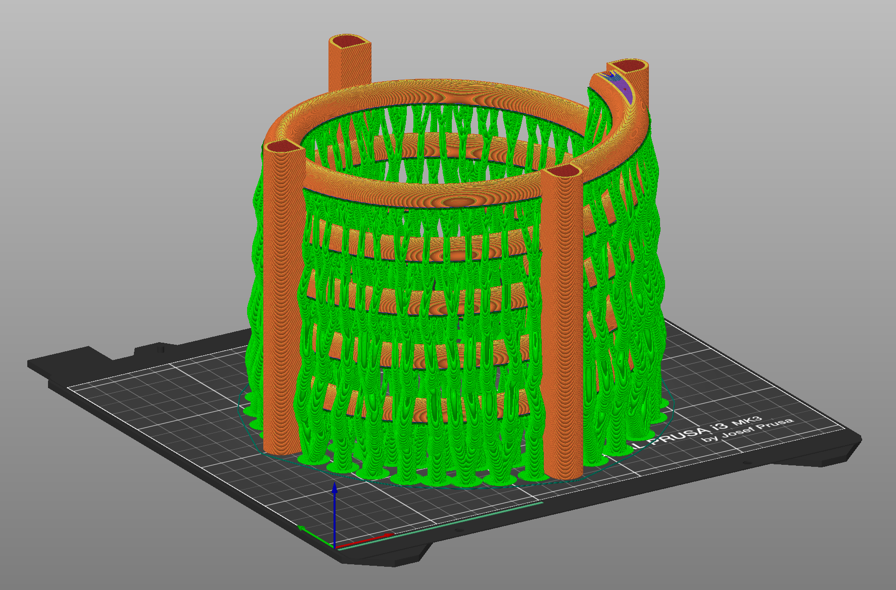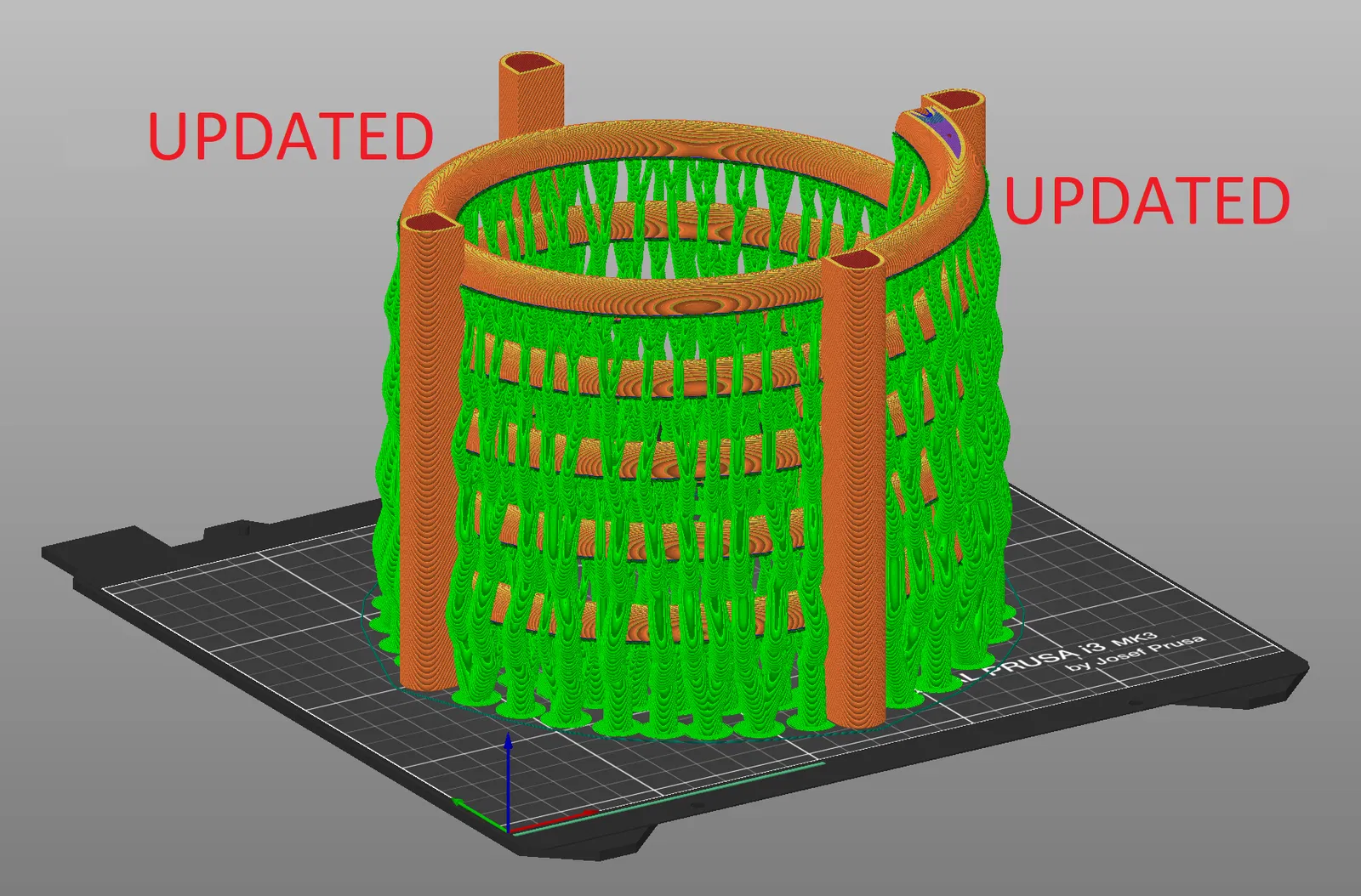 In ở chế độ rắn để trọng lượng khắc phục độ nổi. Nếu bạn có lớp độn kém đặc hơn, nó sẽ hoạt động như một phao. (Tôi chưa thực hiện bất kỳ phép tính hoặc thử nghiệm độ nổi nào vào thời điểm này. Tôi in mọi thứ với 4 lớp bao quanh để tăng độ bền, đây là phương pháp đã được sử dụng trong v1 và các phiên bản tiếp theo cũng sẽ tương tự.