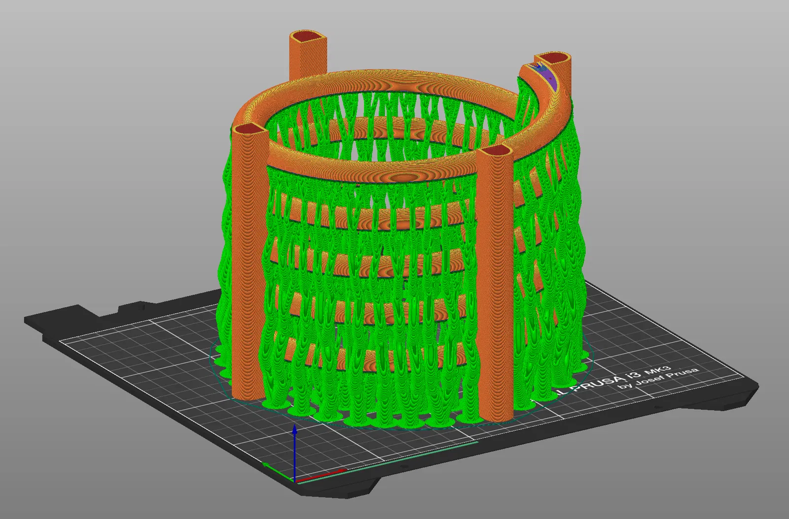 Sản phẩm này được tạo ra để dự thi cuộc thi bể cá, được thiết kế trên Fusion và in bằng PETG với các lớp 0.20, sử dụng hỗ trợ hữu cơ (organic supports).
