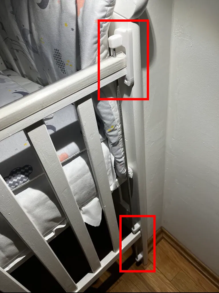 Pát nhựa dùng để giữ thanh ray cho phần hàng rào của nôi có thể trượt lên xuống. Giúp bé an toàn hơn khi ngủ và cha mẹ dễ dàng chăm sóc bé hơn.