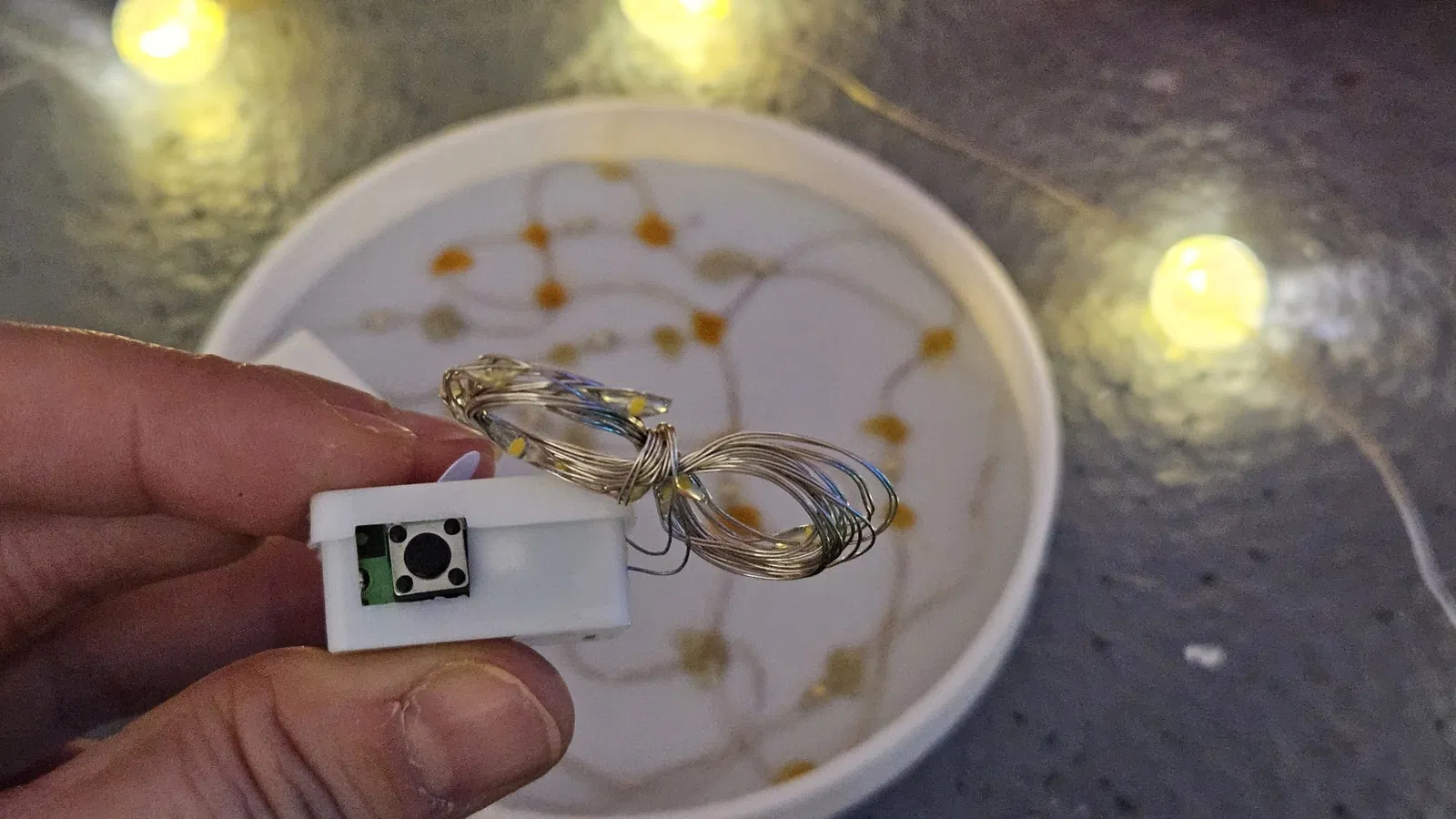 Tôi đã sử dụng một dây đèn LED mua từ Shein, rất dễ giấu trong các dự án như thế này và cũng rất nhẹ. Tôi sẽ để link cho bạn ở đây: https://euqs.shein.com/1pcCopperWireStringLightWith10-20/30SquareBoxes-p-22279991-cat-2306.html?share_from=null&url_from=GM7475035390458499072&ref=www&rep=dir&ret=euqs