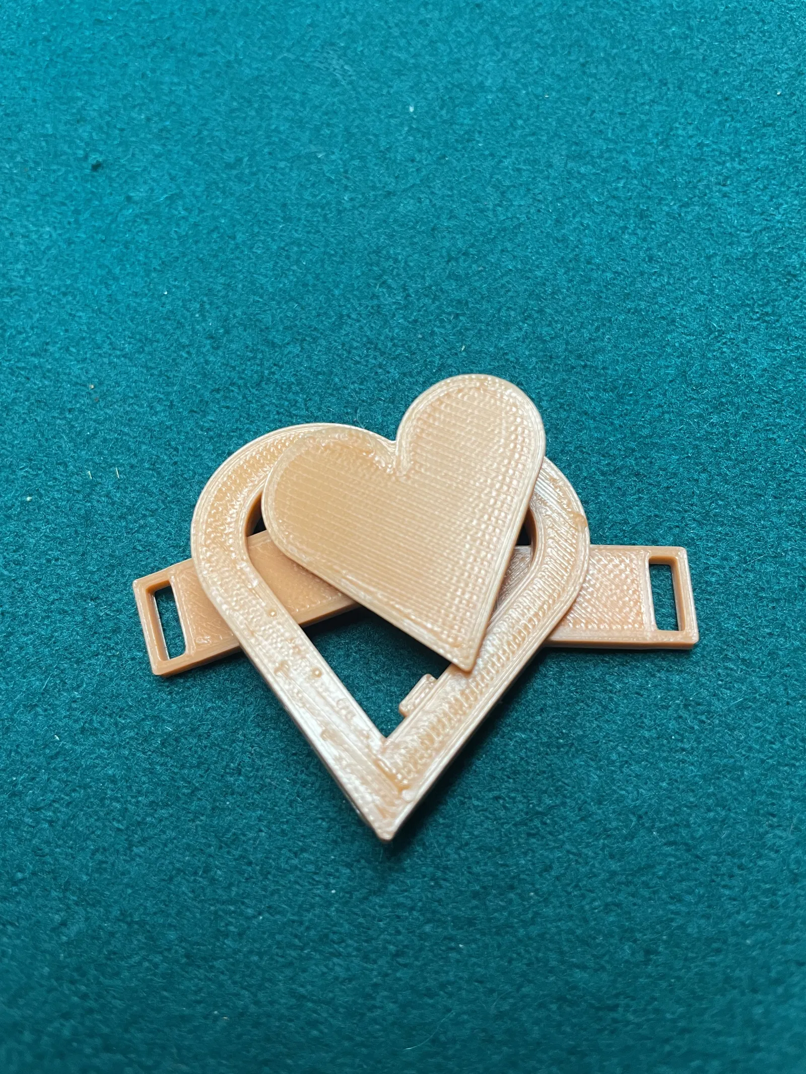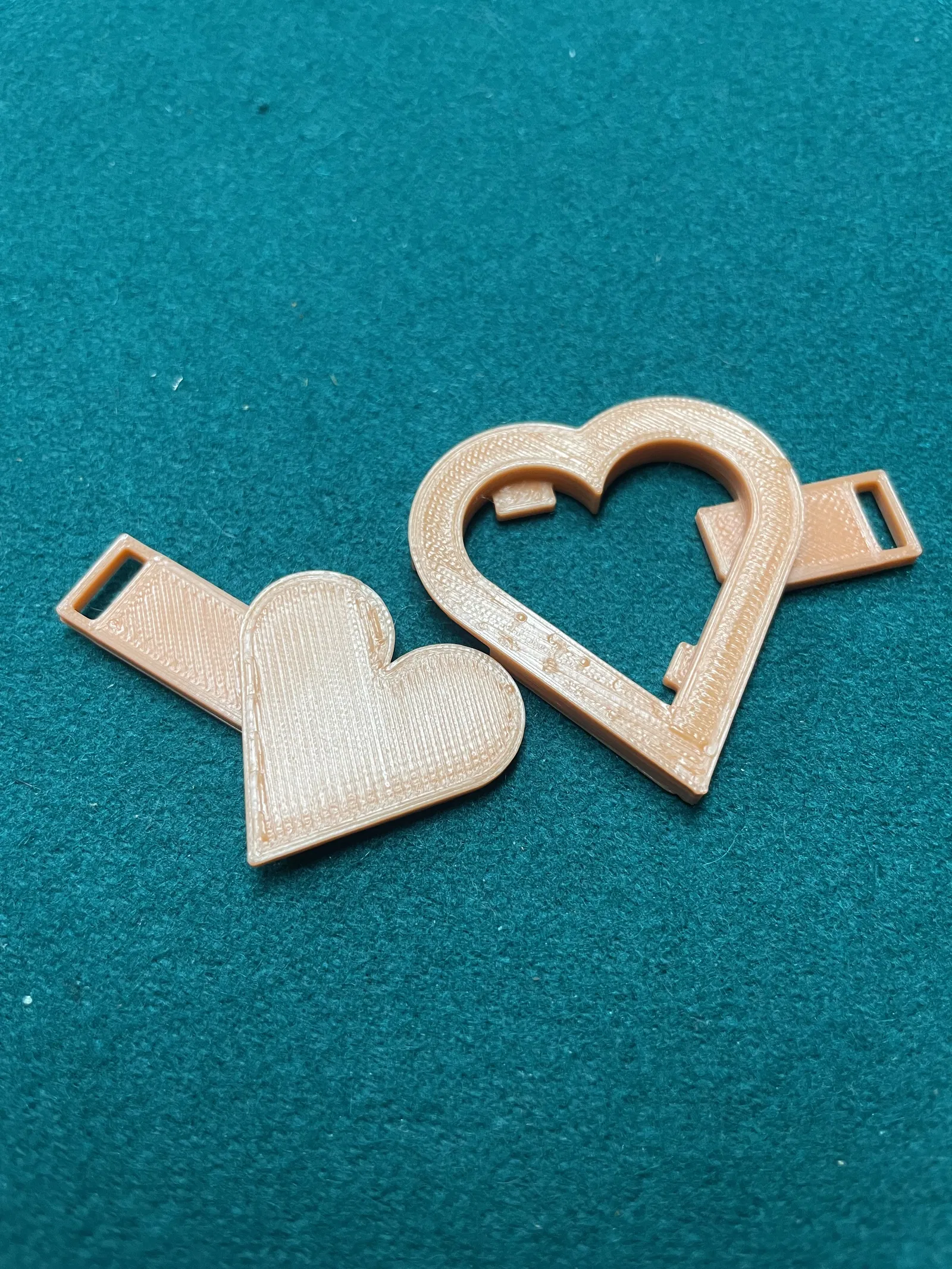 Khóa hình trái tim được thiết kế dựa trên một chiếc thắt lưng mà tôi từng nhìn thấy. Luồn trái tim bên trong qua mặt sau của trái tim bên ngoài, và khi bạn làm phẳng chúng, nó sẽ khóa lại. Sử dụng đế đỡ và hoạt động tốt nhất trên các bề mặt phẳng.