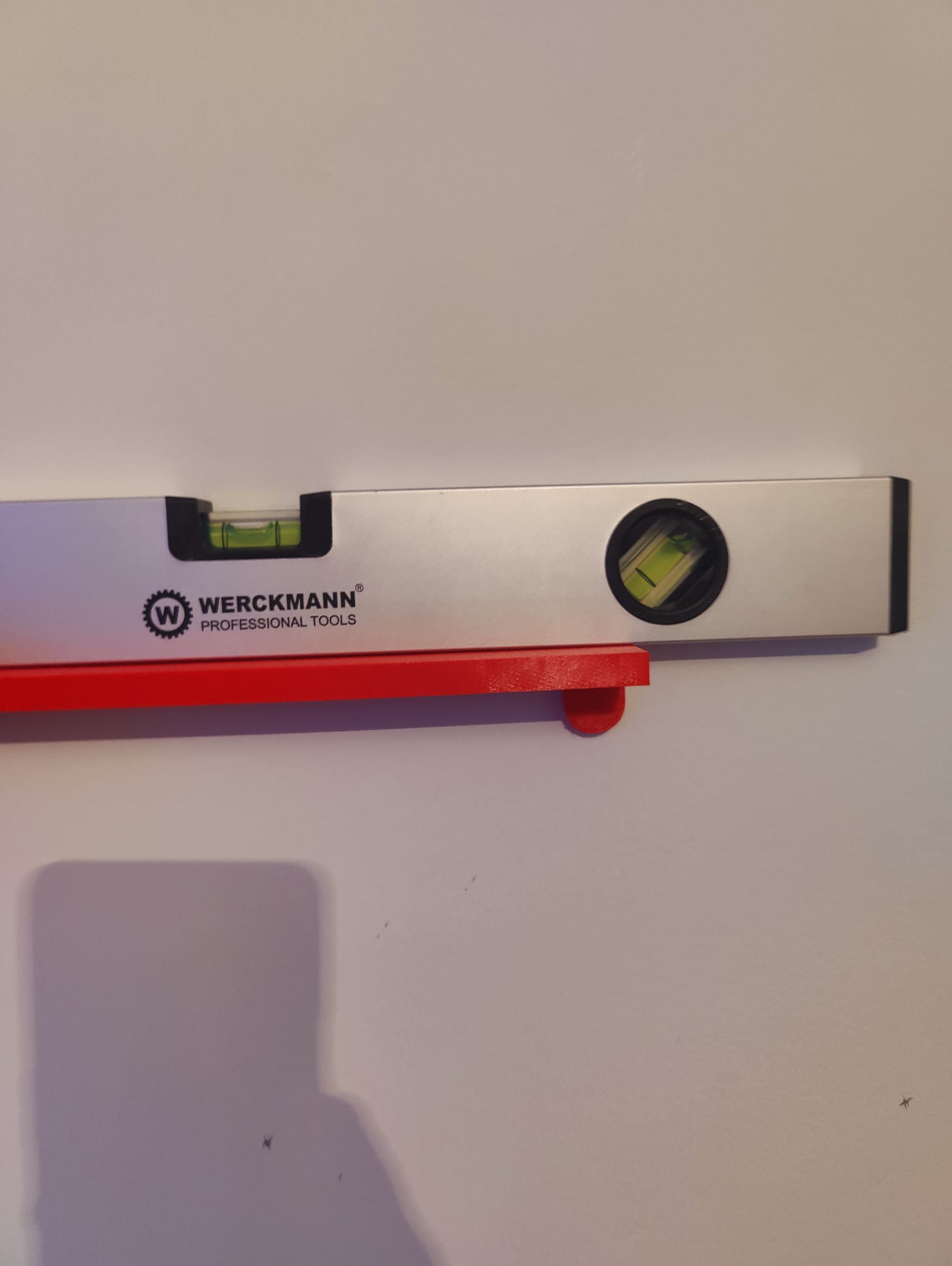 Mấy cái lỗ bắt vít mình làm cái khuôn này thì có thể dễ dàng đánh dấu lên tường, ví dụ như dùng cây bút chì. Bạn có thể đặt cái thước cân nước lên cái cạnh của khuôn, hoặc đơn giản là dùng cái điện thoại của mình để làm thước cân nước nha
