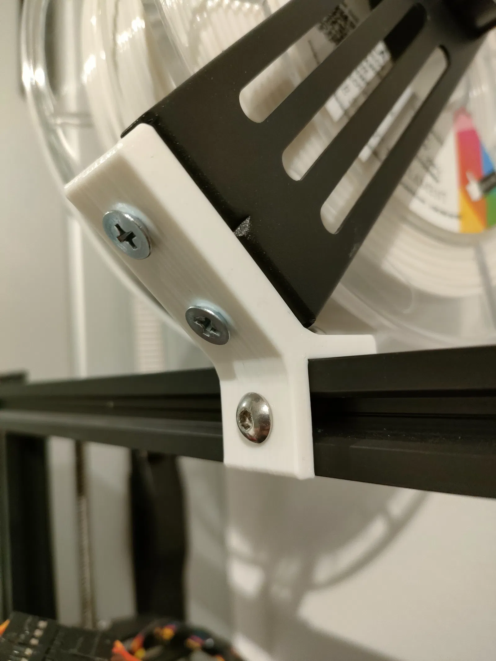 Giá đỡ cuộn dây tóc gắn trực tiếp cho Ender 3 hoặc các máy tương tự. Dùng T-nut M5 có sẵn, dễ in, không cần support. Có file tùy chỉnh. Khuyên dùng PLA.