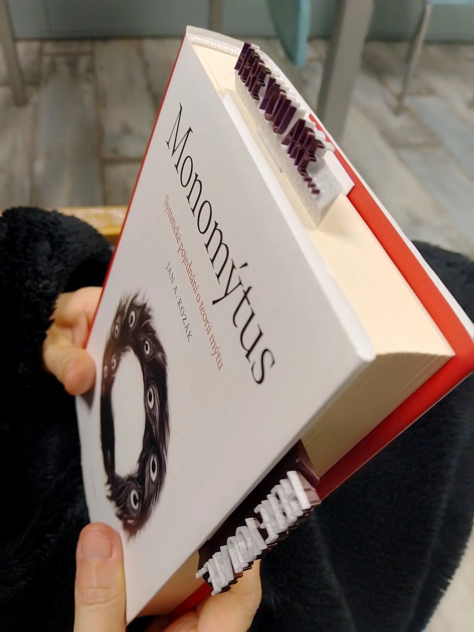 Kẹp sách "Here you are.." bằng nhựa PLA, in được 2 màu trên máy MK4. Thiết kế đơn giản, in xong để nguội bớt là lấy ra dễ dàng, kẹp sách dẻo và nhẹ tênh.