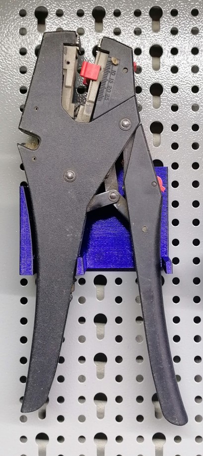 Cái kẹp giữ kìm tuốt dây điện đơn giản cho bảng treo tường Mars. Được in với đế đỡ cho phần móc treo tường, sử dụng vật liệu PETG với lớp in dày 0,3 mm.