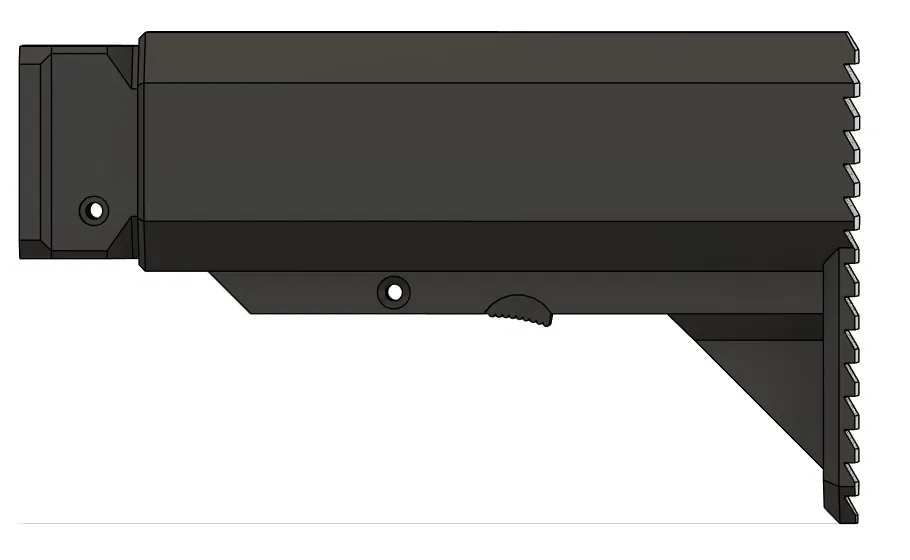 Báng rút cho bộ Mosquito V2, có ngăn chứa pin. Link tới handguard: [https://www.printables.com/model/751077-m-lok-handguard-for-mosquito-v2-airsoft-kit](https://www.printables.com/model/751077-m-lok-handguard-for-mosquito-v2-airsoft-kit). Cần in bộ phận ống đệm với các bộ phận kiểm tra độ khít. Dựa trên kết quả kiểm tra, in báng tương ứng.