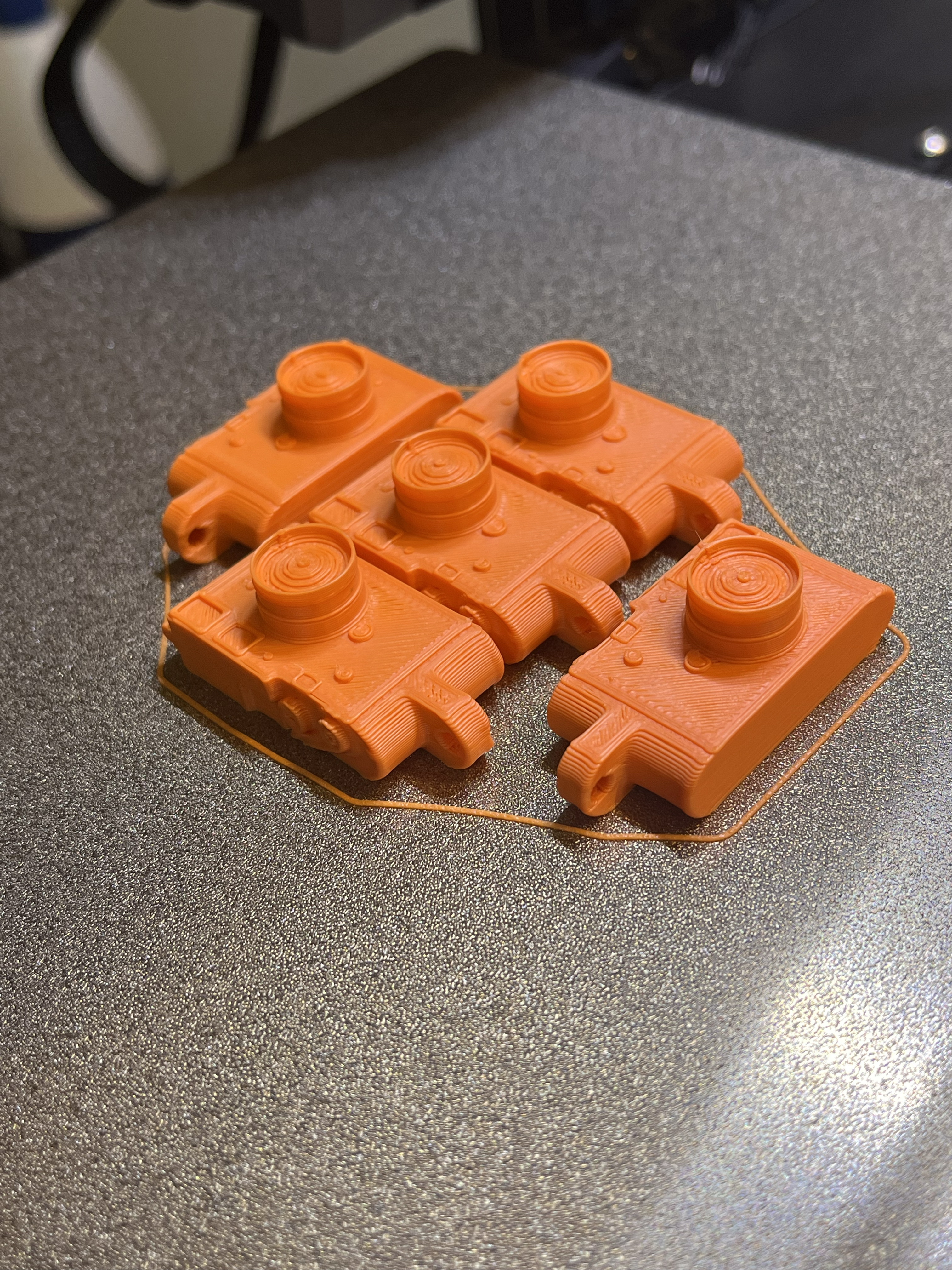 In bằng PLA. Bạn cũng có thể sử dụng các vật liệu khác. 15% độ dày ruột (infill) là đủ. Không cần hỗ trợ.