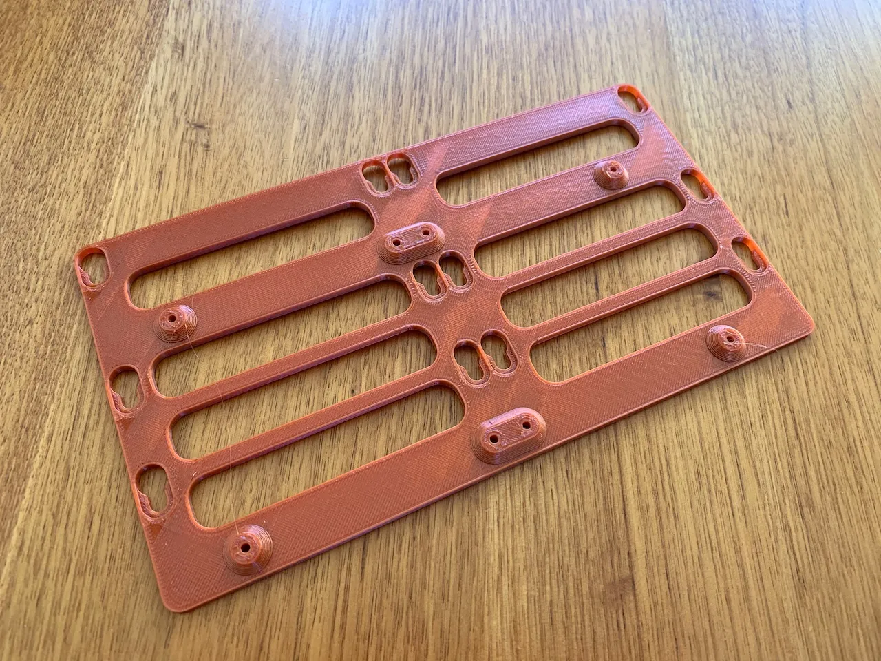 In giá đỡ chính bằng ABS hoặc PET sử dụng hồ sơ Normal 0.20. Giá đỡ có 8 lỗ để gắn vào vỏ máy và 8 rãnh cho hai HDD. 8 lỗ này căn chỉnh với các lỗ gắn 2.5” trên vỏ Elite 110. 8 rãnh sử dụng khoảng cách SFF-8301 và nên hoạt động với bất kỳ HDD 3.5” nào.