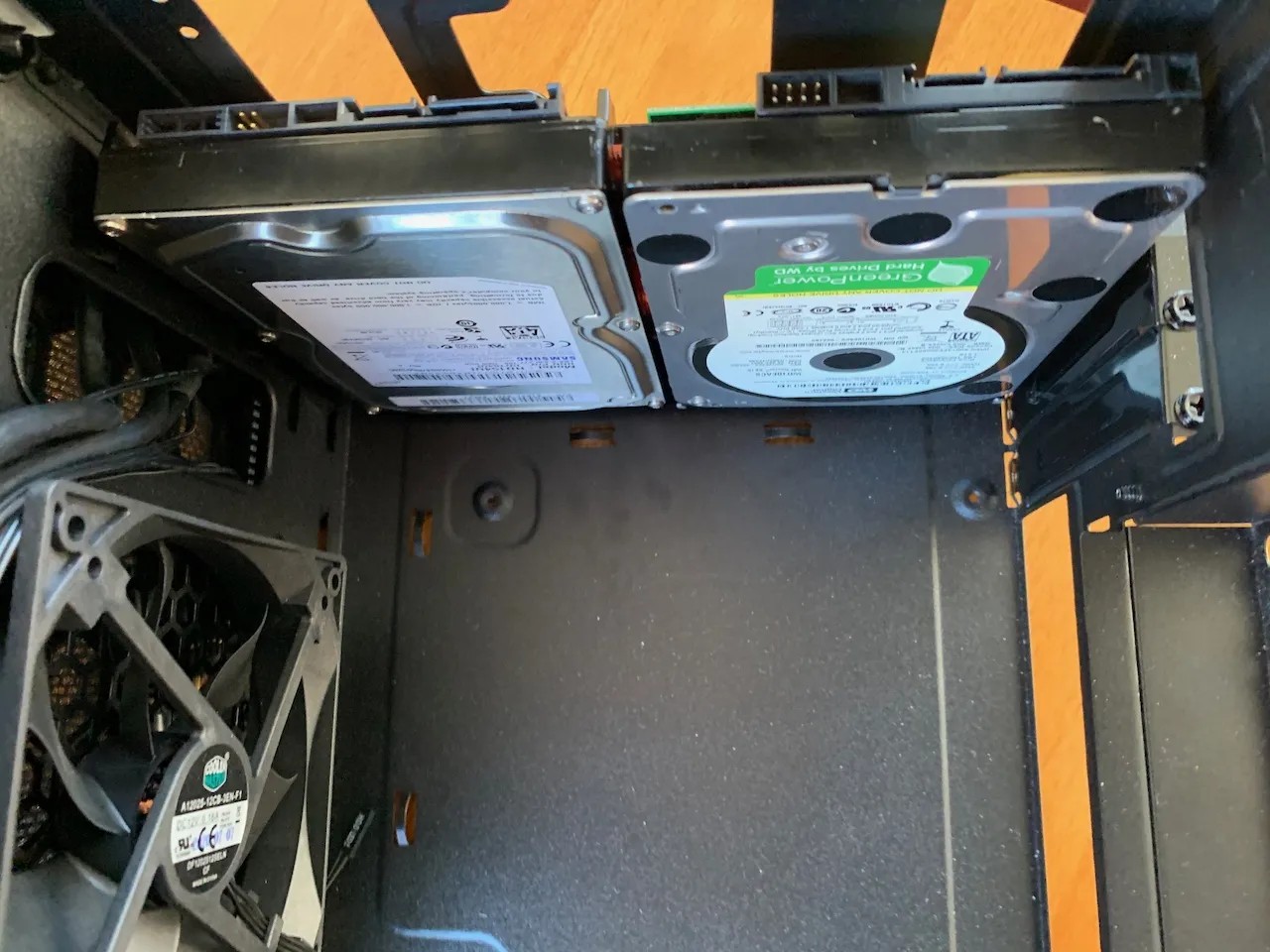 Cài đặt 4x 3.5 "ổ cứng trong trường hợp Master Elite 110 Cooler. Hoàn hảo cho bản dựng NAS ITX mini-ITX.