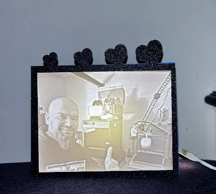 Bambu khuyến nghị kích thước 144*108 cho tranh lithophane để vừa với hộp đèn nền của họ. Tôi đã dùng kích thước này và tạo ra một cái hộp có nắp vừa vặn. Bạn có thể thêm đèn LED vào bên trong hộp - có lỗ để luồn dây điện.