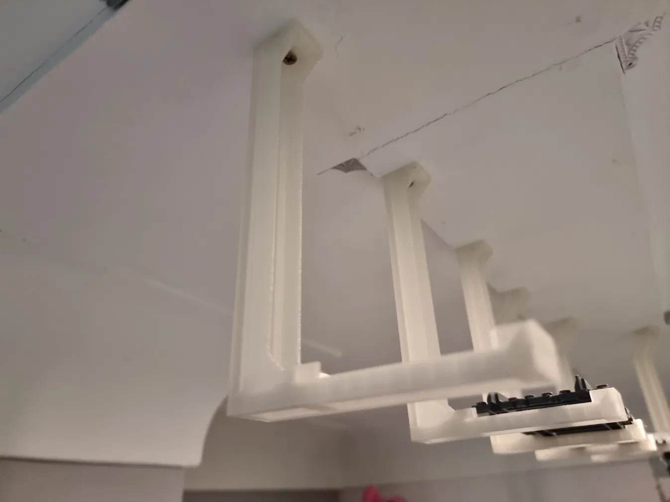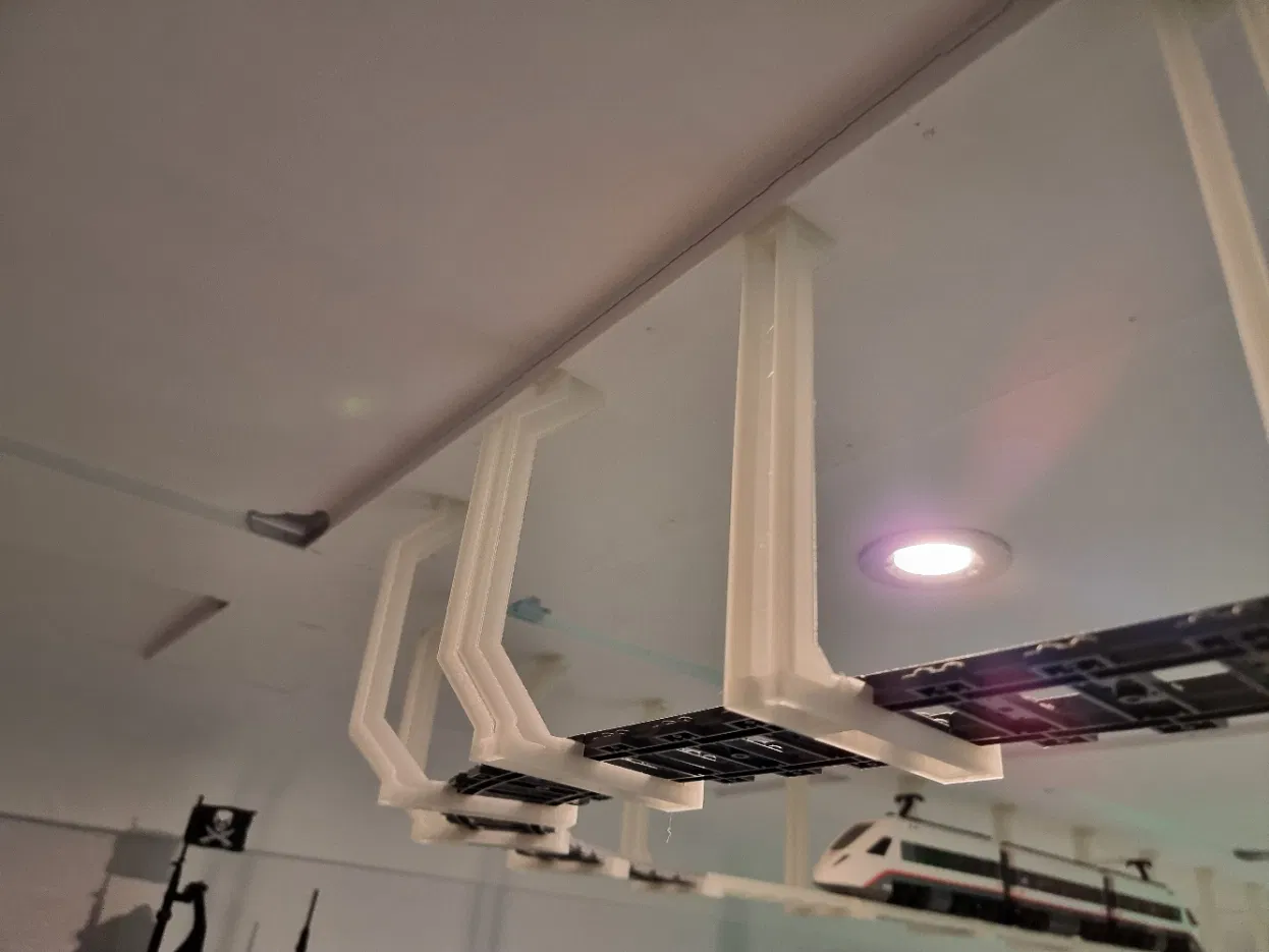 Bộ kẹp trần giúp bạn gắn đường ray tàu hỏa Lego lên trần nhà. Có hai loại kẹp, loại rộng dùng cho góc cua để tàu chạy êm ái. Đường ray lắp dễ dàng, khớp nối nằm gọn trong kẹp. In đứng, không cần support.