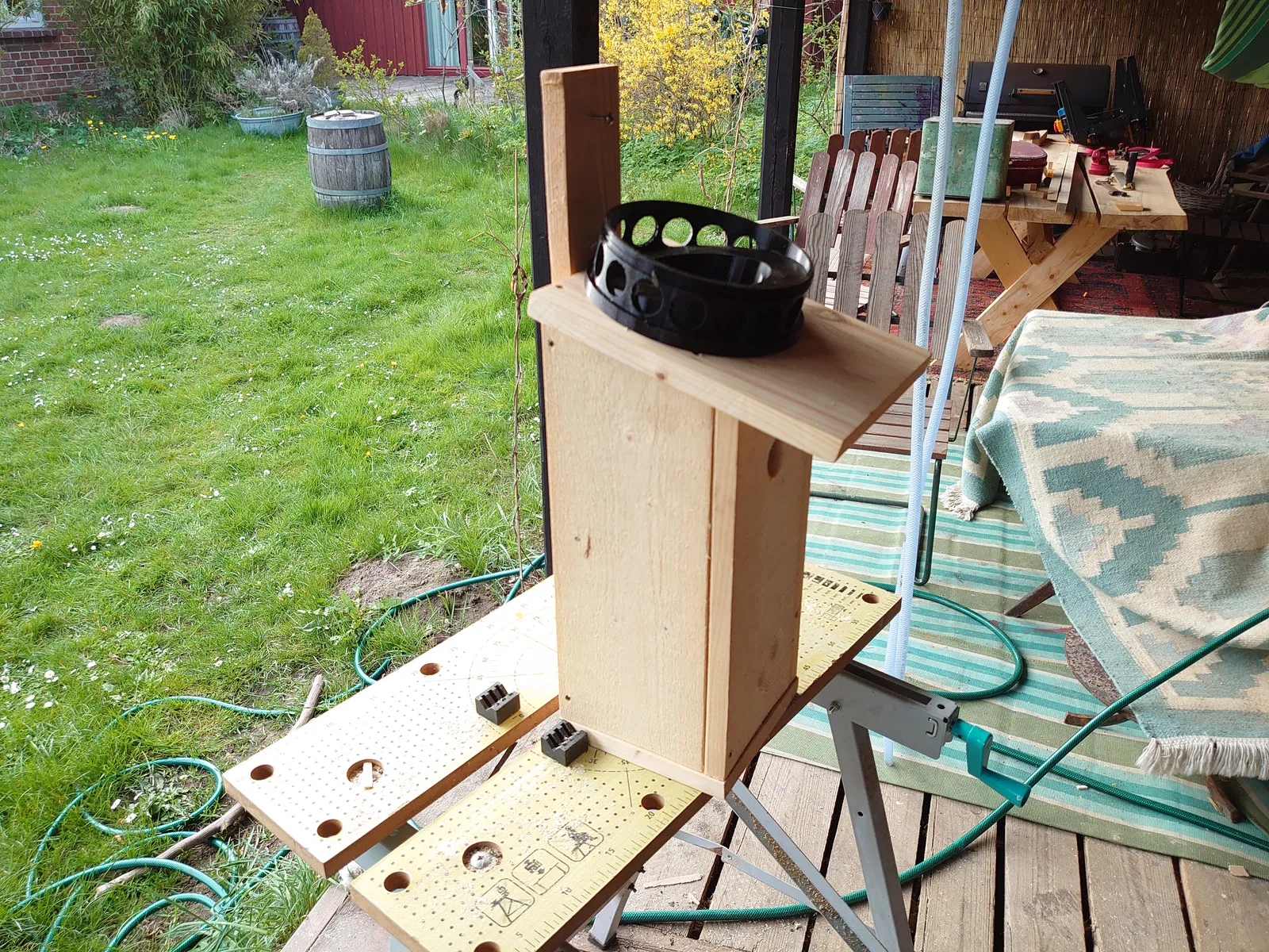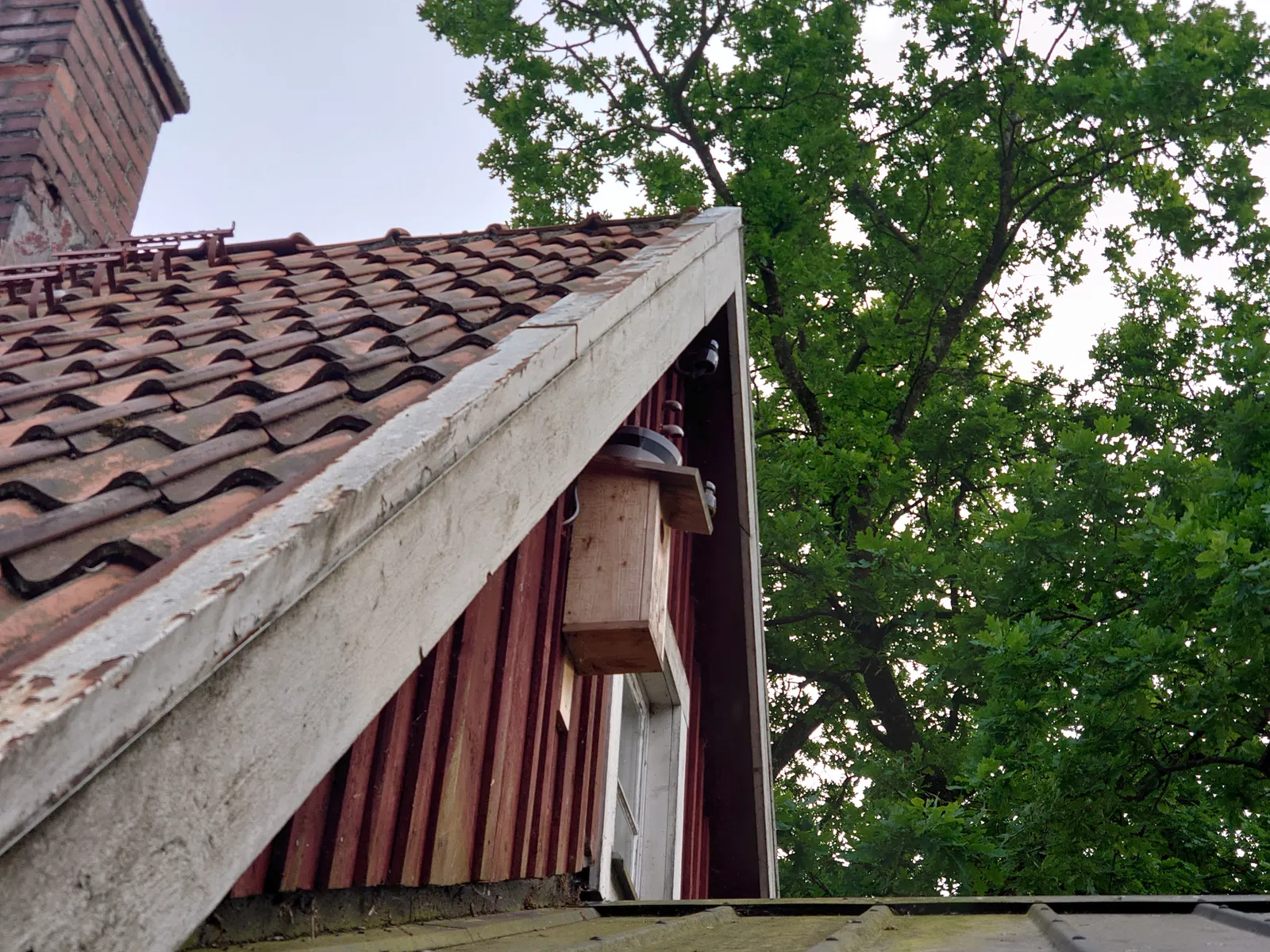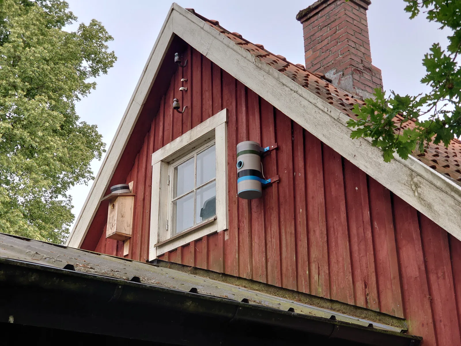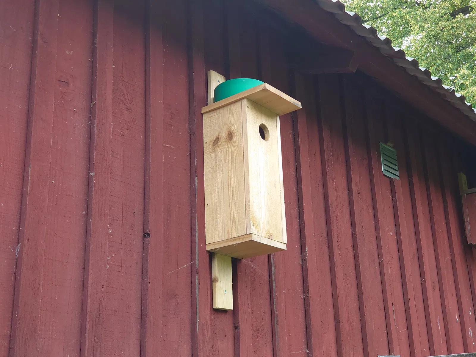 Thôi, làm sao giờ? Thay vào đó tui làm cái nhà chim bằng gỗ và đặt cái hộp camera lên trên. Tốt hơn hẳn. Năm ngoái có 9 con Blue Tit (Cyanistes caeruleus) ra đời rồi bay đi. Năm nay có 5 trứng Sáo đá nhưng buồn là bị chồn hoặc chim ác là nó phá.
