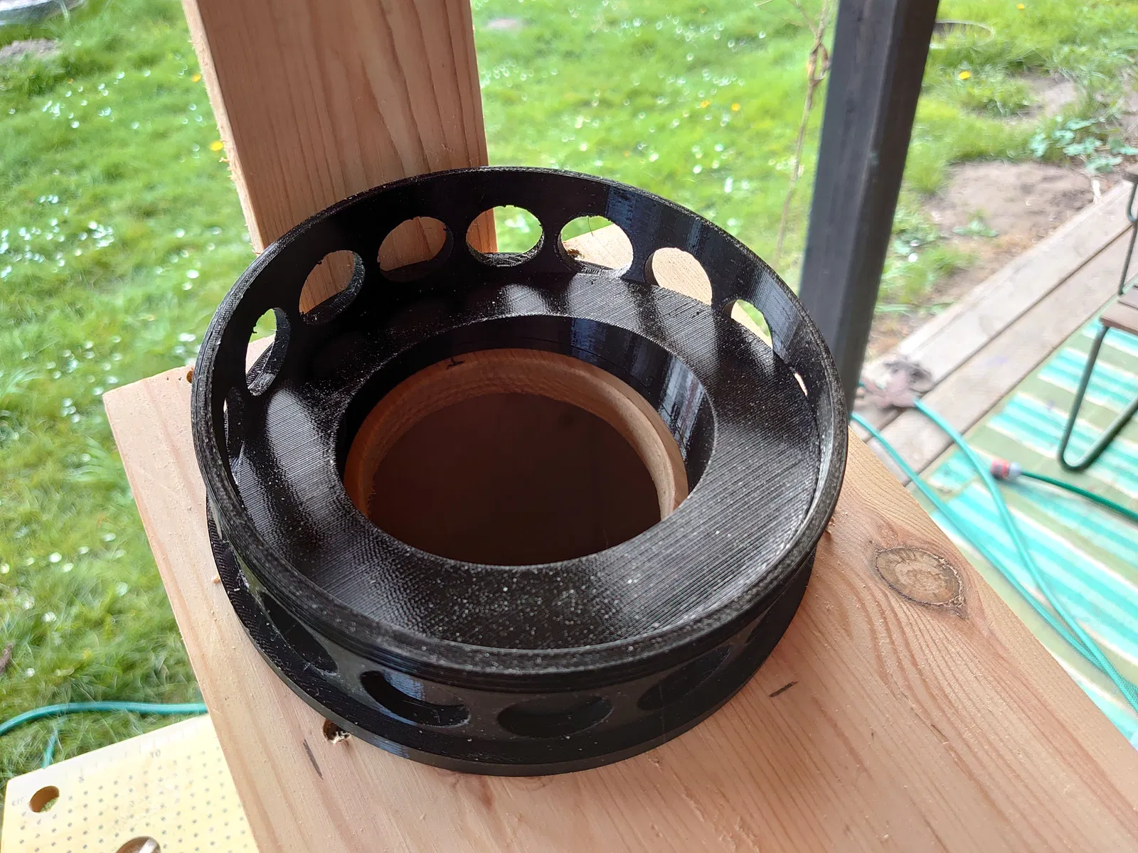 Sao lại tròn? Thì tui có làm cái nhà chim dạng module (coi hình nha), cao bao nhiêu cũng được, đường kính lỗ vô nhiêu cũng được, có lỗ dưới đáy để thoát nước, Tui nghĩ là cái nhà chim đẹp lắm… mà chim nó hong thích ở. Chắc nó thích sống trong nhà vệ sinh quá haha :-)