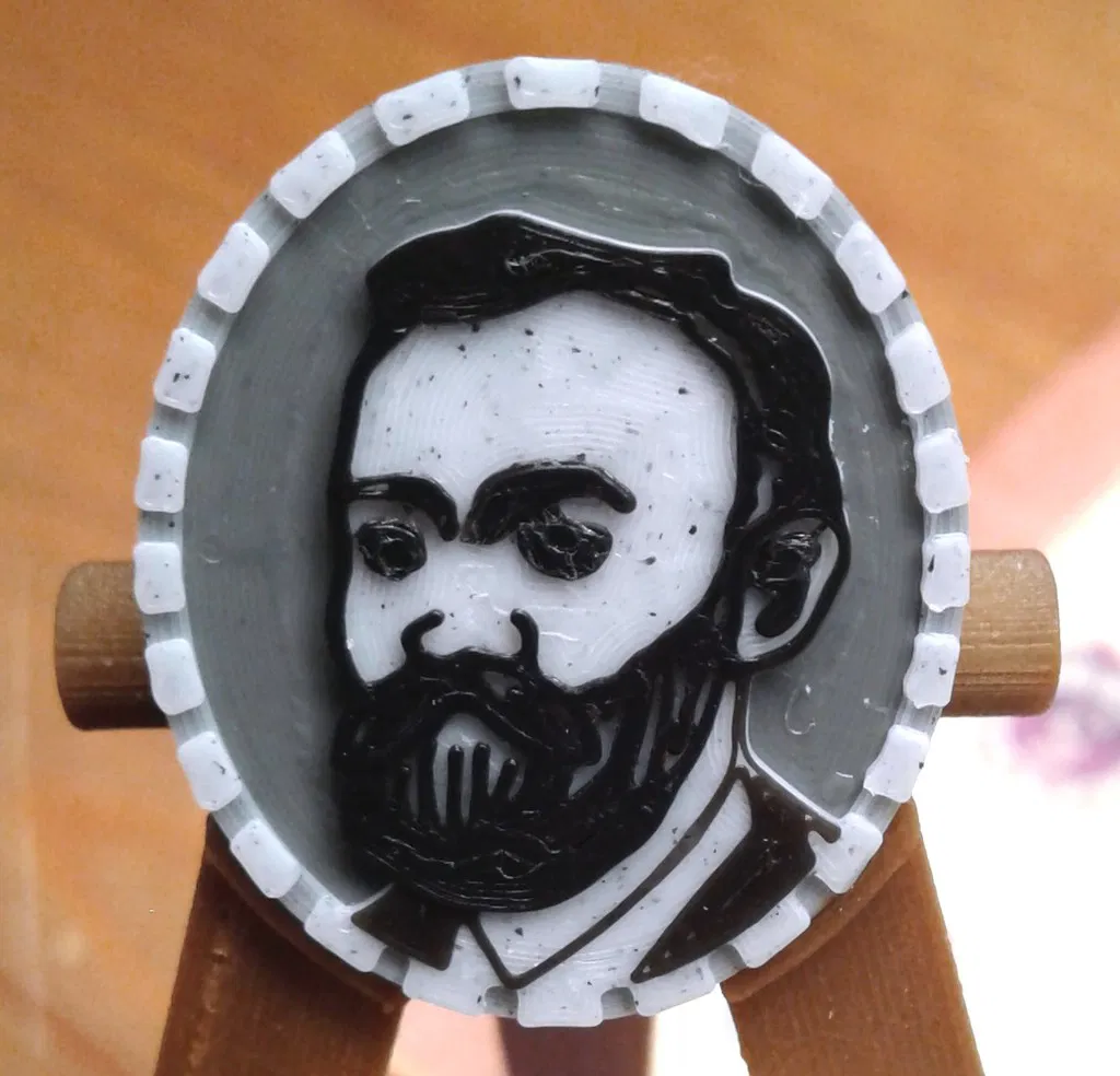 Phần chân dung Alfred Nobel được in với độ phân giải 0.2 mm, sử dụng hai lần đổi filament.