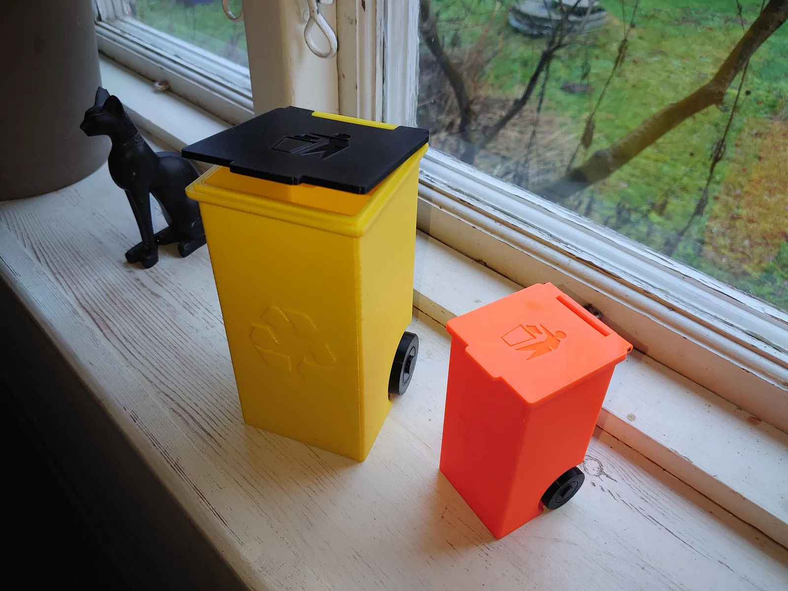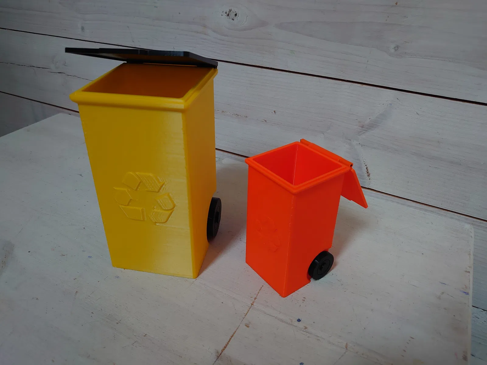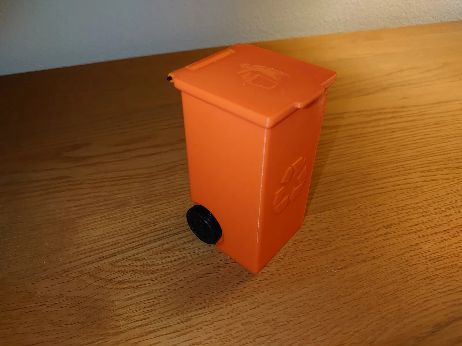 Một mẫu thùng rác đồ chơi nhỏ, có thể dùng tùy thích! Ví dụ: để tái chế pin. Có hai mẫu nắp, một có biểu tượng thùng rác và một không. Có cả phiên bản phóng to 150%.
