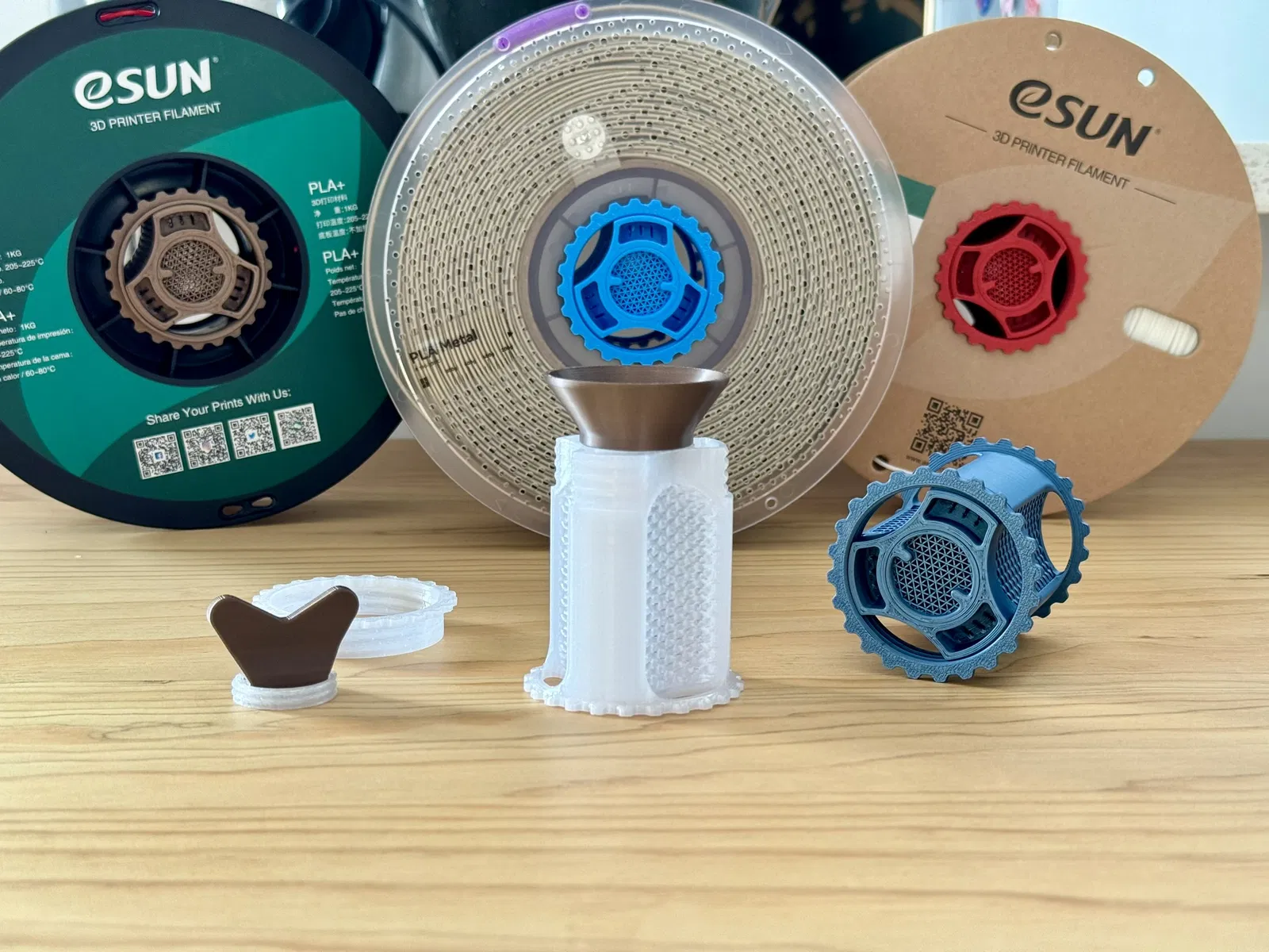 - Hoạt động như một "miếng đệm giữ cuộn dây" (spool shim) của cuộn dây tái sử dụng Bambu để ngăn các mảnh cuộn dây bị tách ra