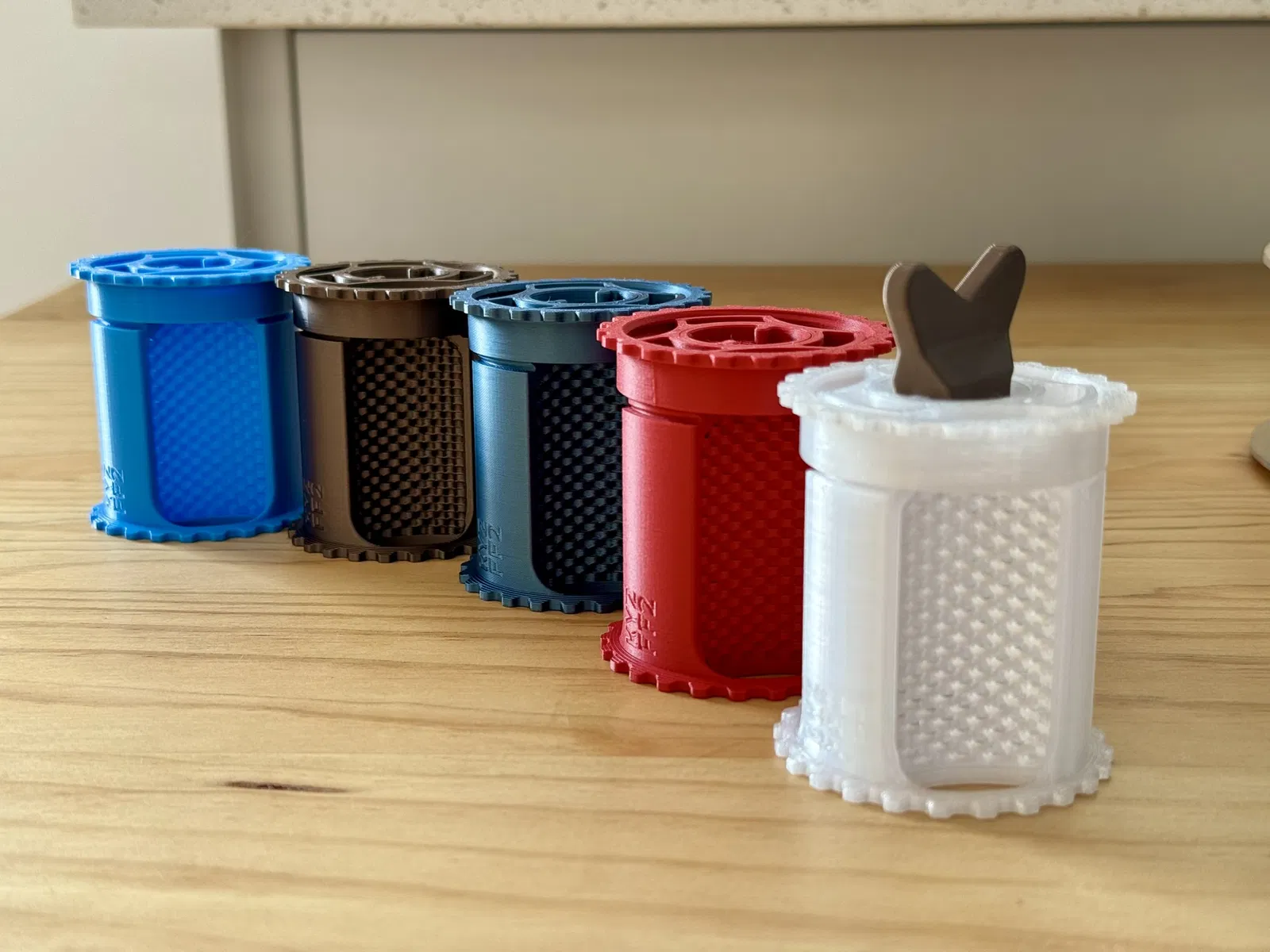 - Nắp được thiết kế để lắp rất khít. Nếu bạn in bằng PLA, bạn có thể thấy nó vặn vào rất dễ nhưng nếu bạn in bằng PETG, bạn sẽ hơi khó dùng móng tay để vặn vào. Điều này để đảm bảo nắp không bị bung ra và làm đổ hết hạt trong quá trình sử dụng. Tui có kèm theo một dụng cụ lắp/tháo nắp để đỡ mỏi tay hơn.