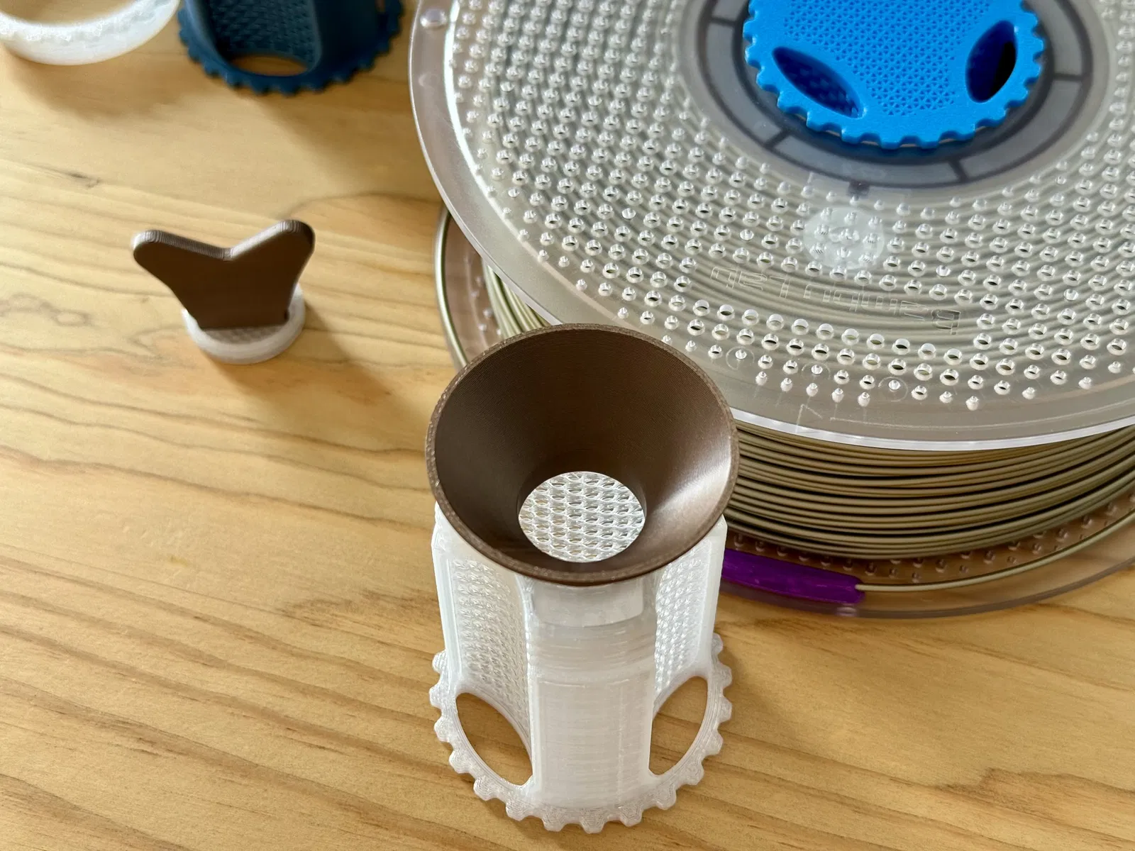 Thiết kế độc đáo giúp làm khô không khí và hạt hút ẩm nhanh chóng, tương thích tốt với cuộn dây Bambu. In nhanh, bền, vật liệu đa dạng. Hoàn hảo để giữ cho filament của bạn luôn khô ráo.